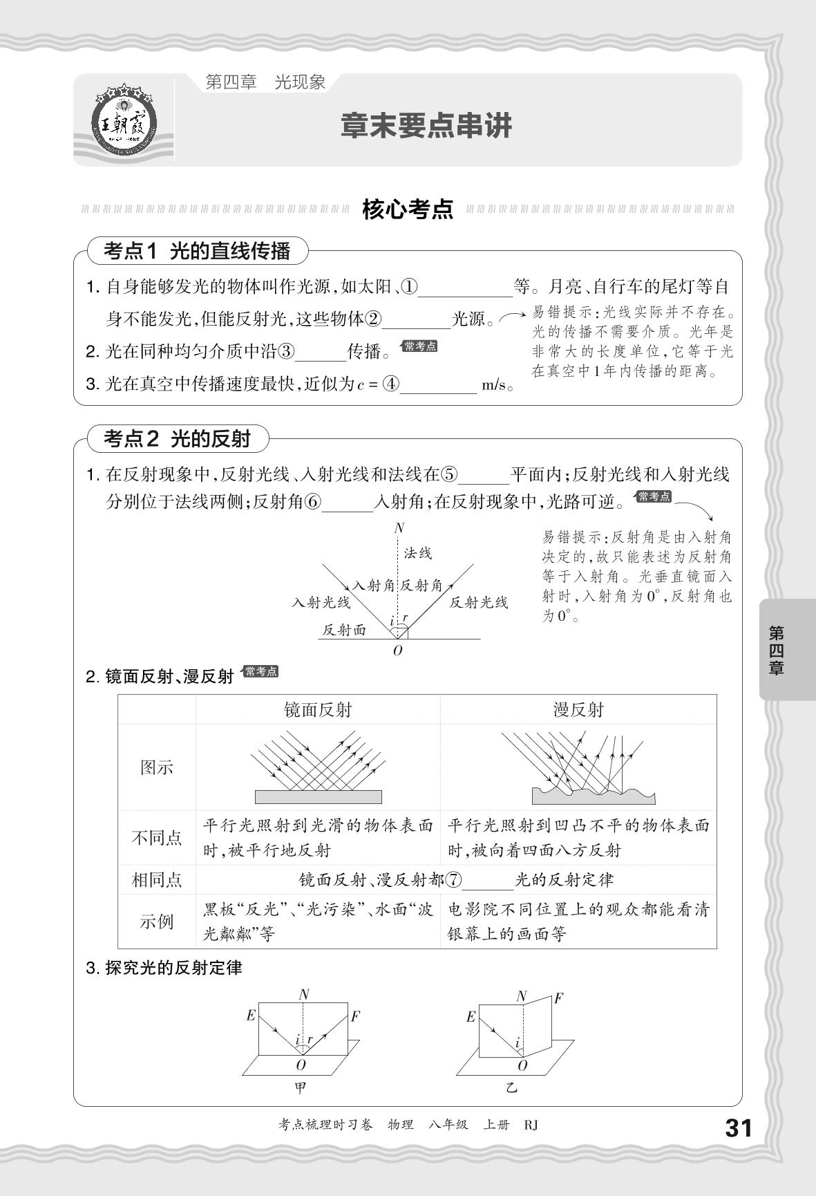 2024秋上册八年级物理人教版(2024) 第四章 章末要点串讲