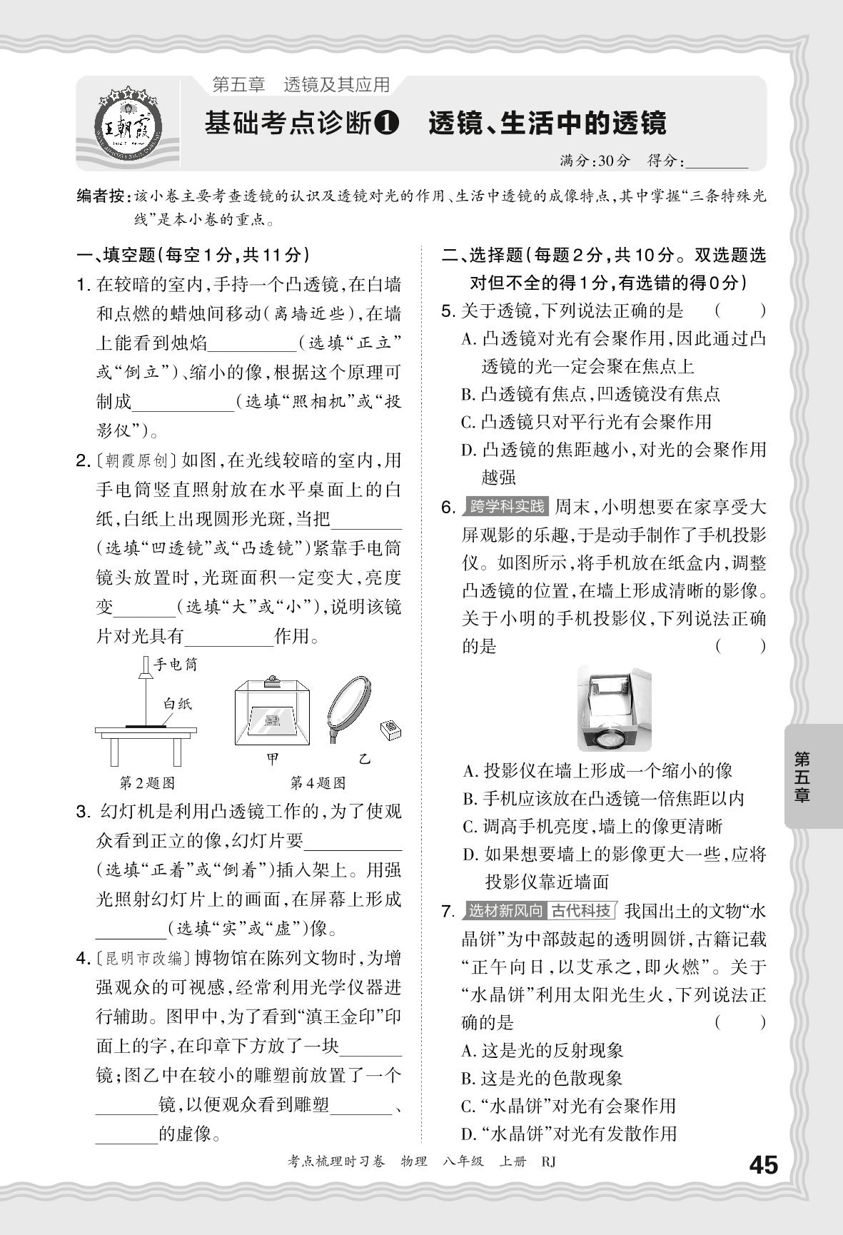 2024秋上册八年级物理人教版(2024) 第五章 基础考点诊断1 透镜、生活中的透镜