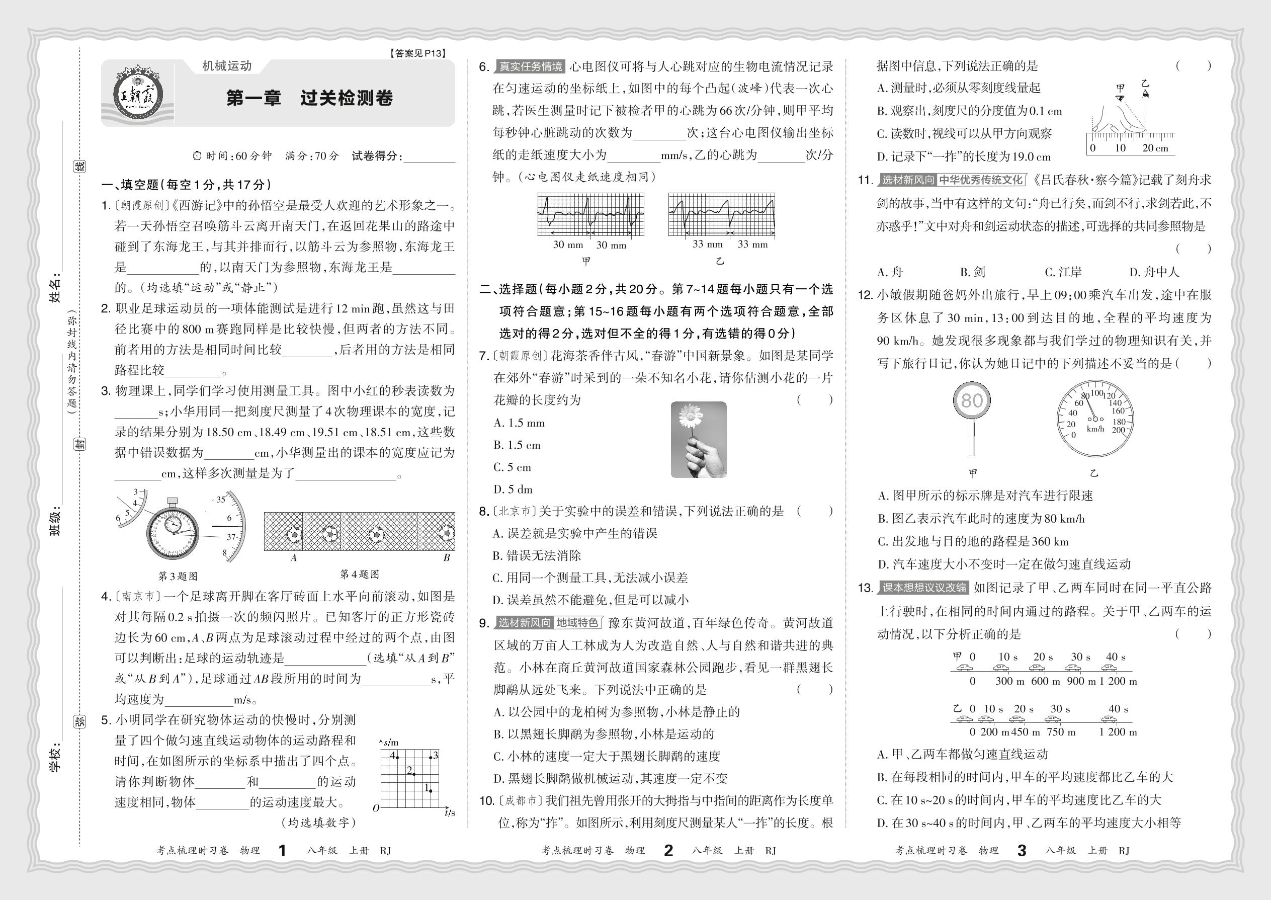 2024秋上册八年级物理人教版(2024) 第一章 过关检测卷