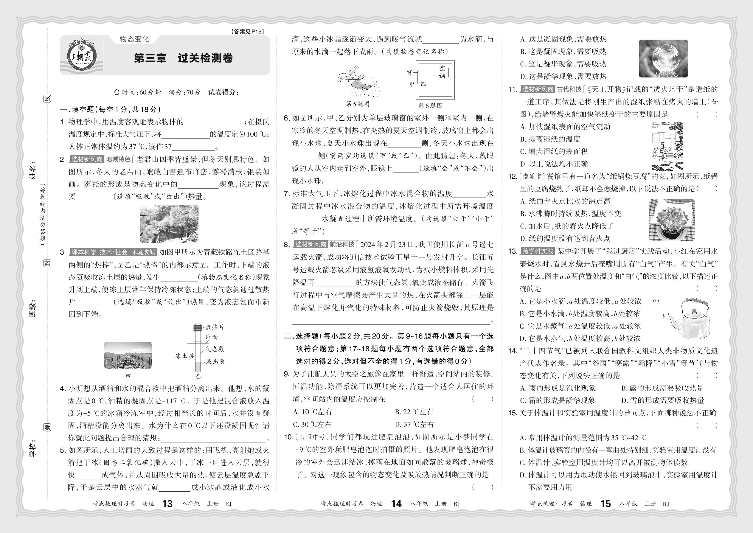2024秋上册八年级物理人教版(2024) 第三章 过关检测卷