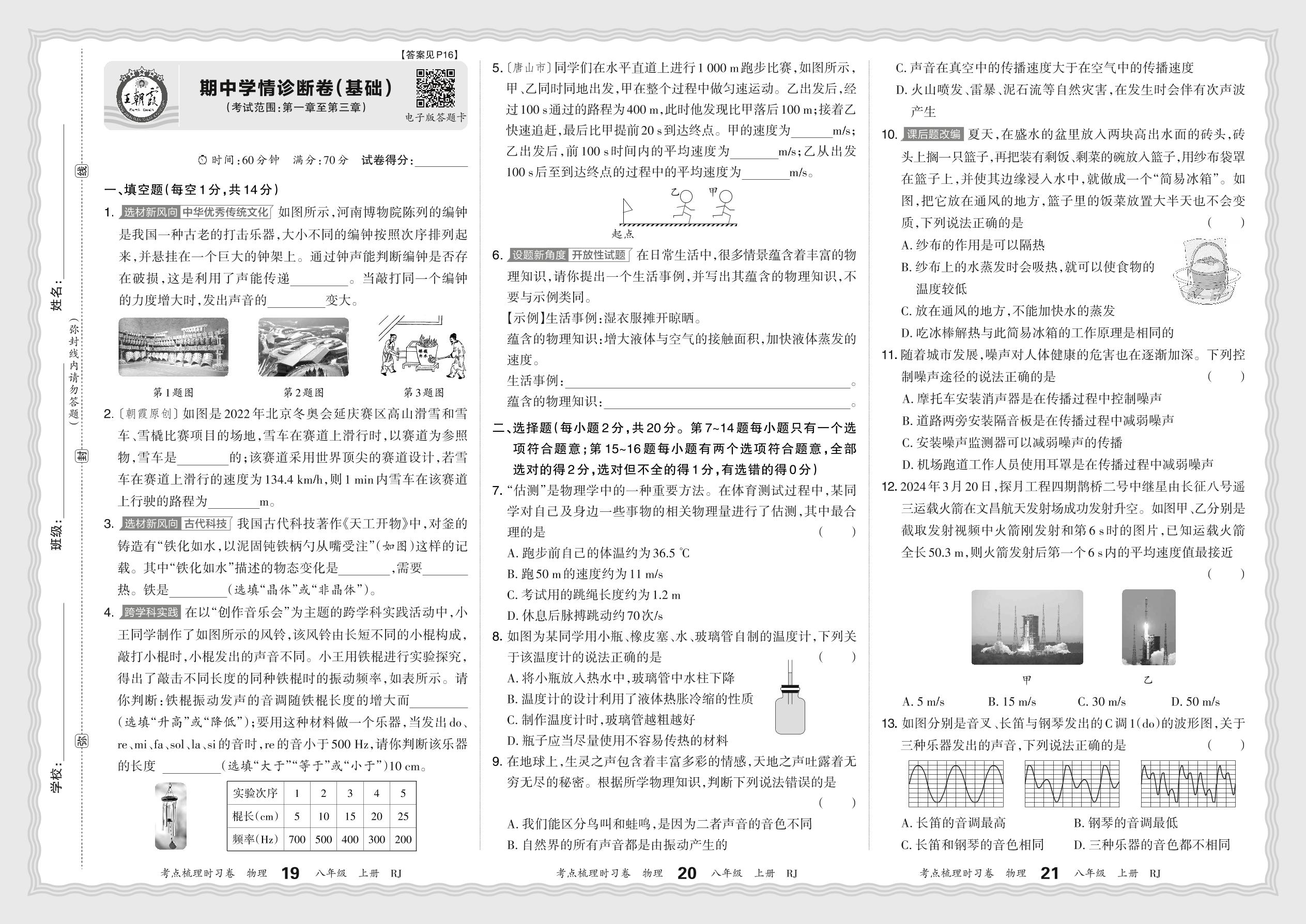 2024秋上册八年级物理人教版(2024) 期中学情诊断卷(基础)