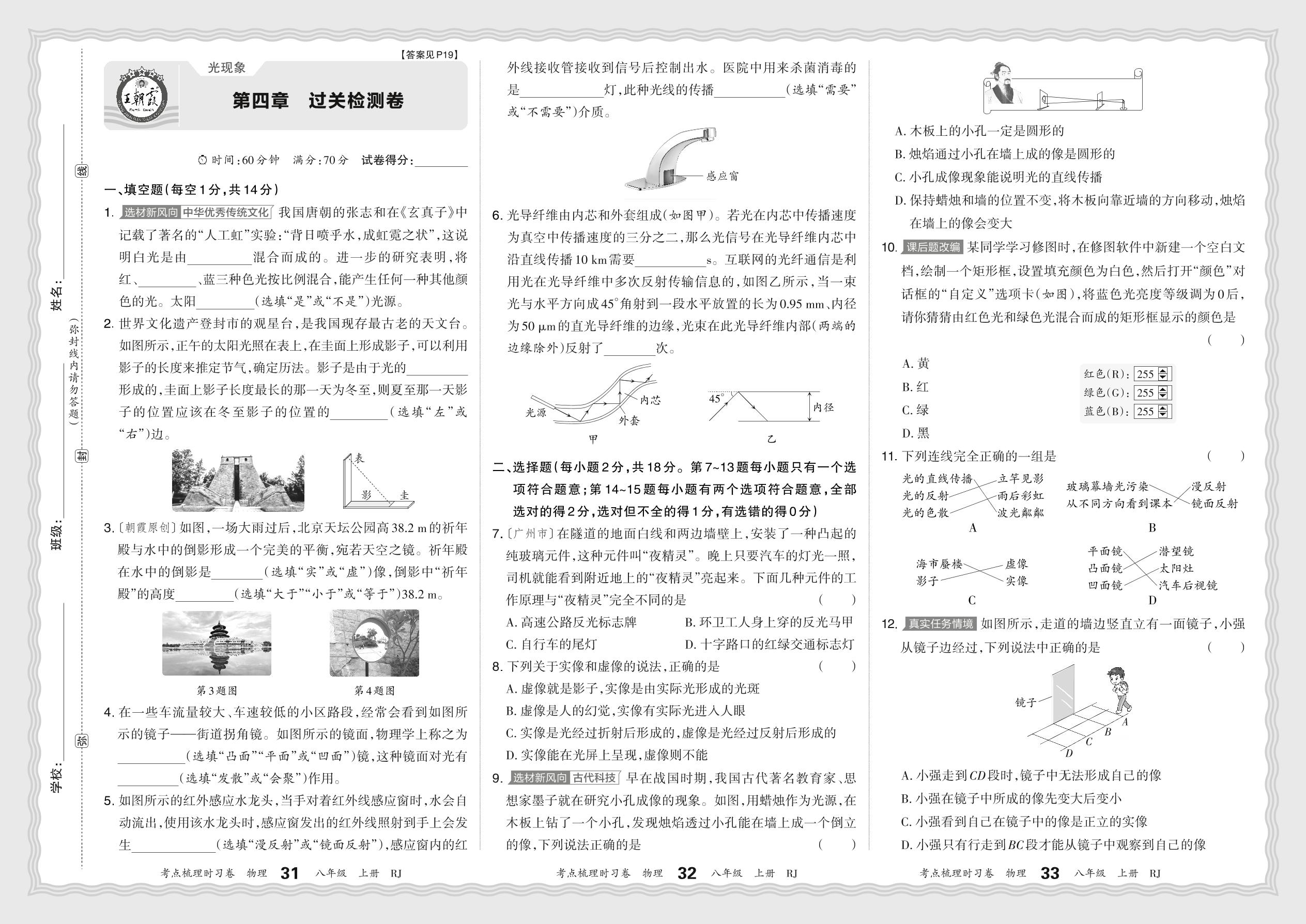 2024秋上册八年级物理人教版(2024) 第四章 过关检测卷
