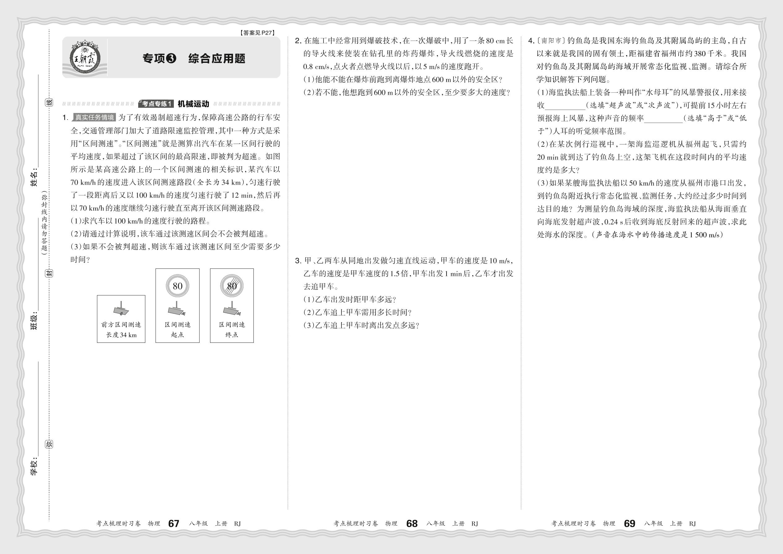 2024秋上册八年级物理人教版(2024) 期末专项卷KD版·综合应用题【3】