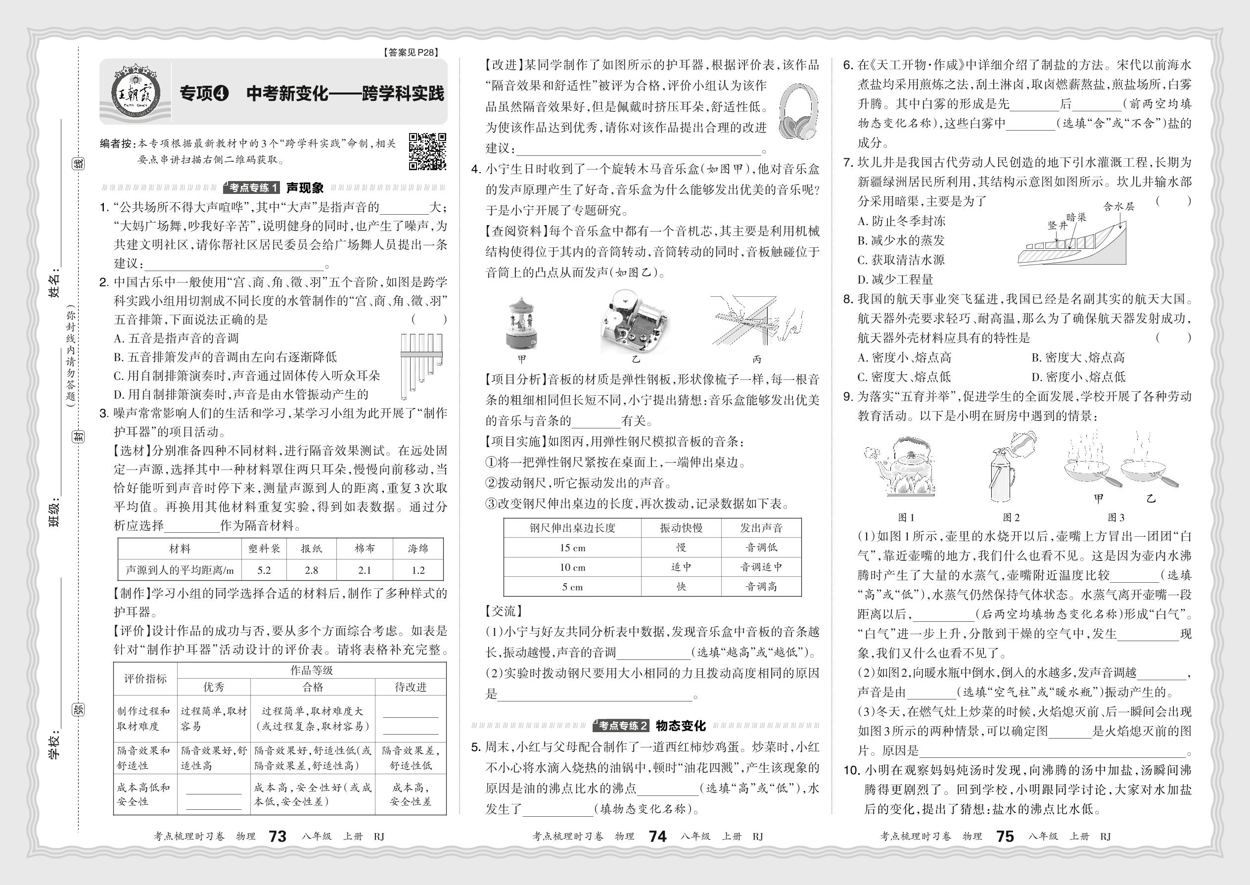 2024秋上册八年级物理人教版(2024) 期末专项卷KD版·中考新变化——跨学科实践【4】