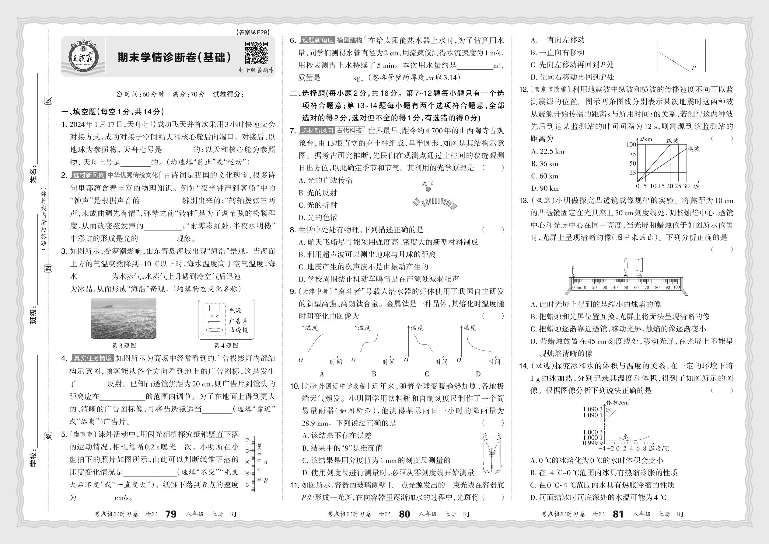 2024秋上册八年级物理人教版(2024) 期末学情诊断卷(基础)