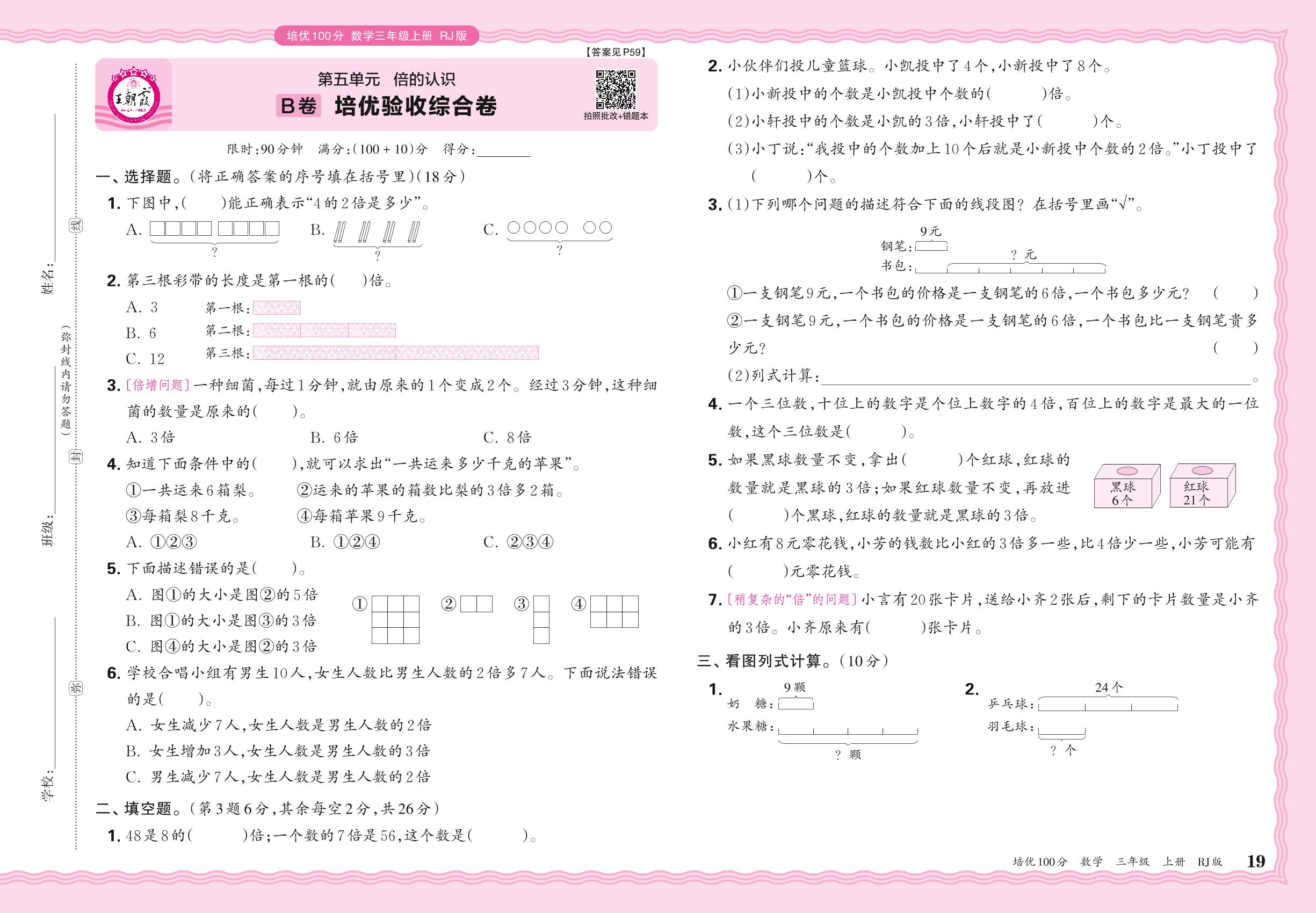 2024秋上册三年级数学人教版 第五单元B卷 培优验收综合卷