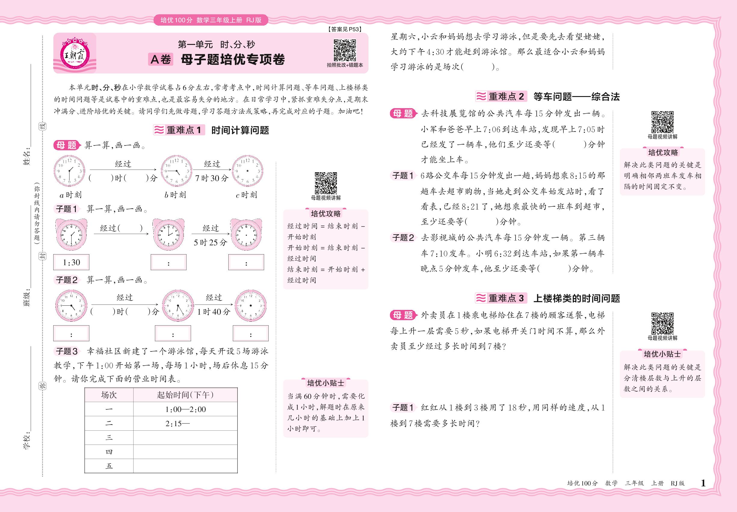 2024秋上册三年级数学人教版 第一单元A卷 母子题培优专项卷