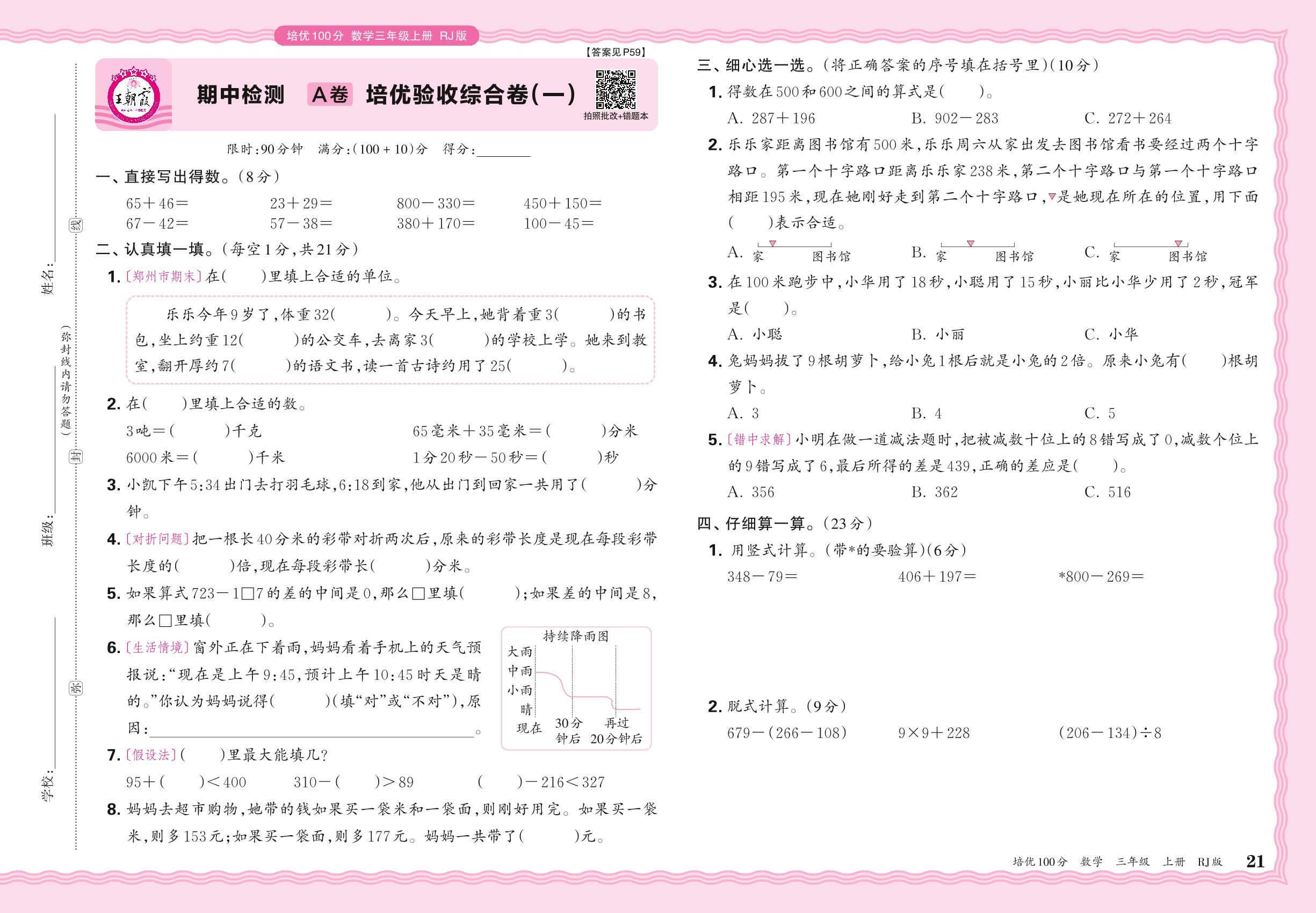 2024秋上册三年级数学人教版 期中检测A卷 培优验收综合卷(一)