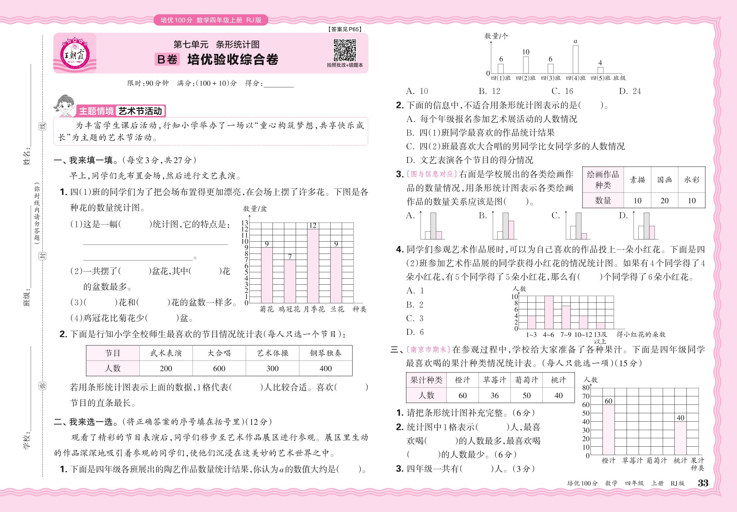 2024秋上册四年级数学人教版 第七单元B卷 培优验收综合卷