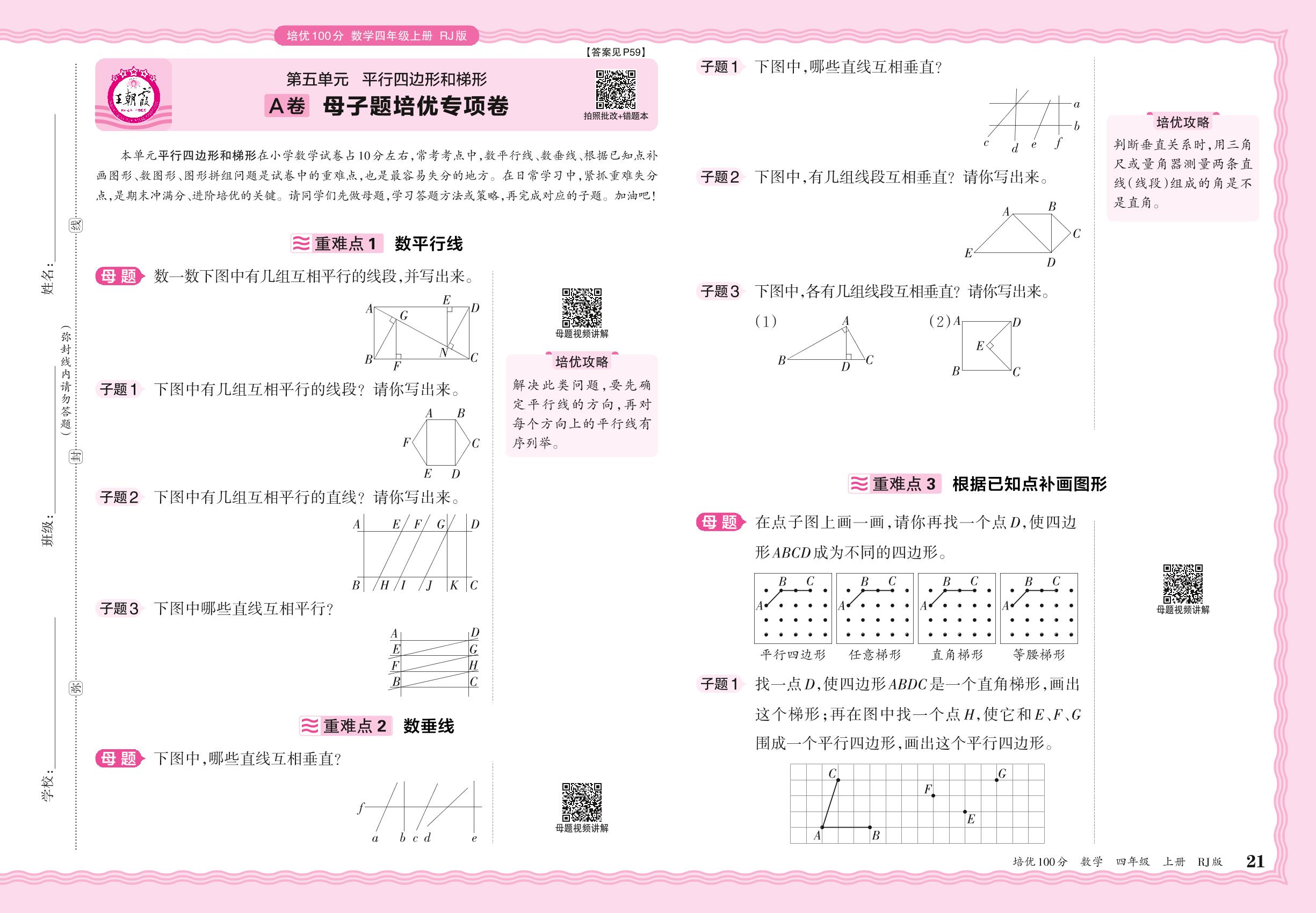 2024秋上册四年级数学人教版 第五单元A卷 母子题培优专项卷