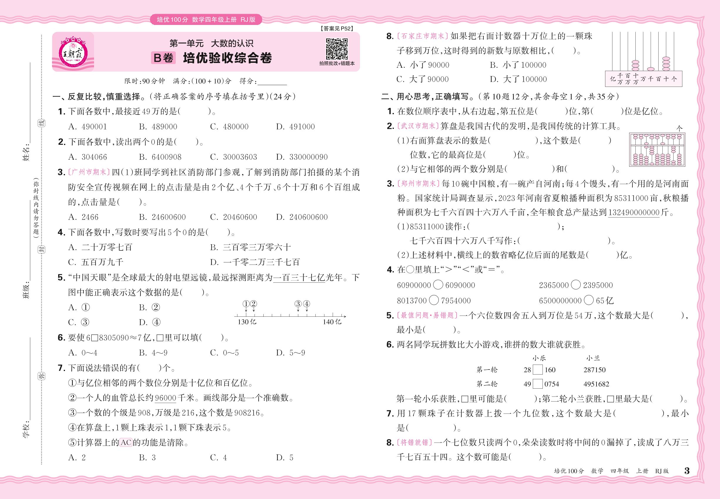 2024秋上册四年级数学人教版 第一单元B卷 培优验收综合卷