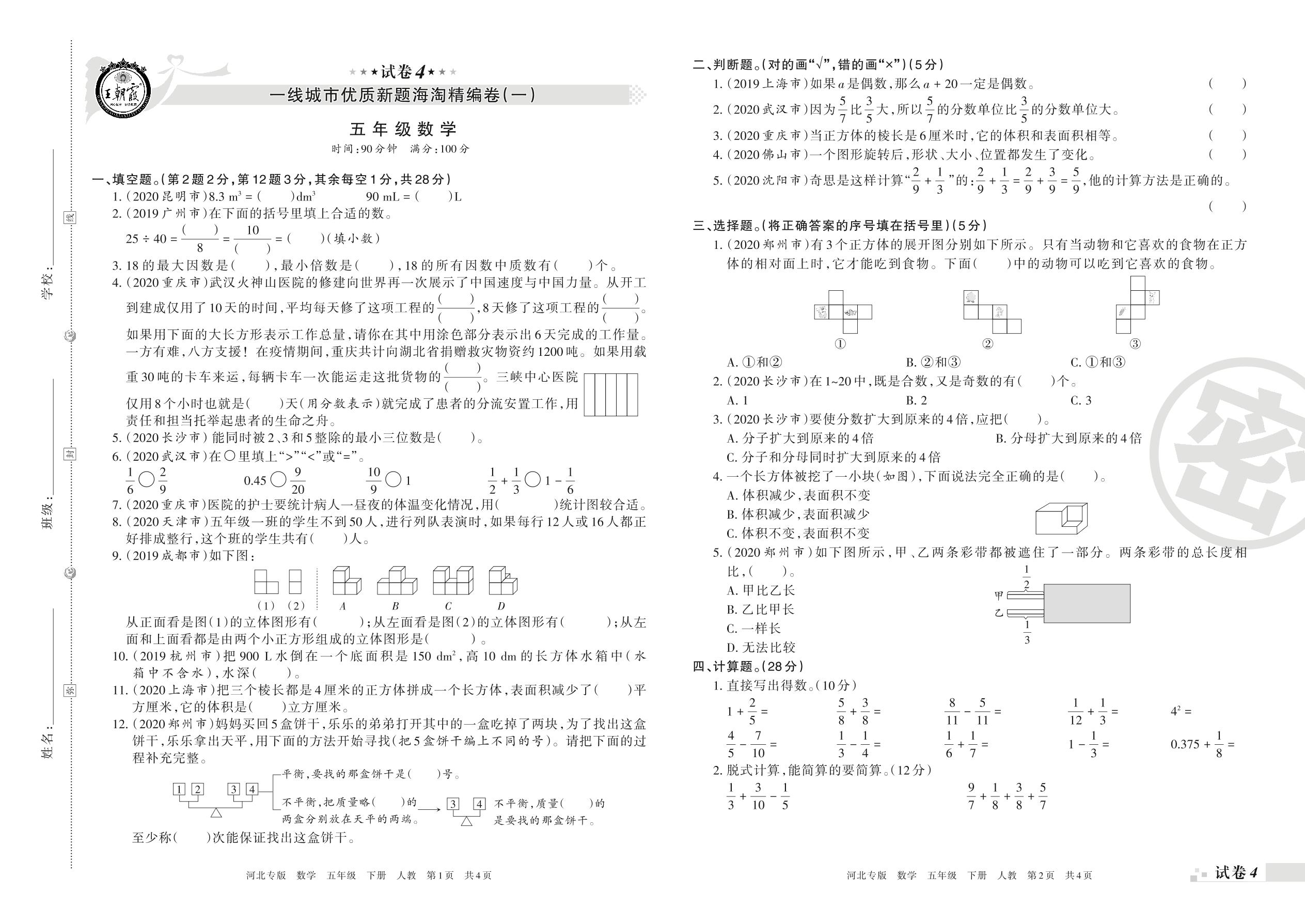 王朝霞海淘期末精编卷五年级下册数学(人教版)_R210804163040【4】