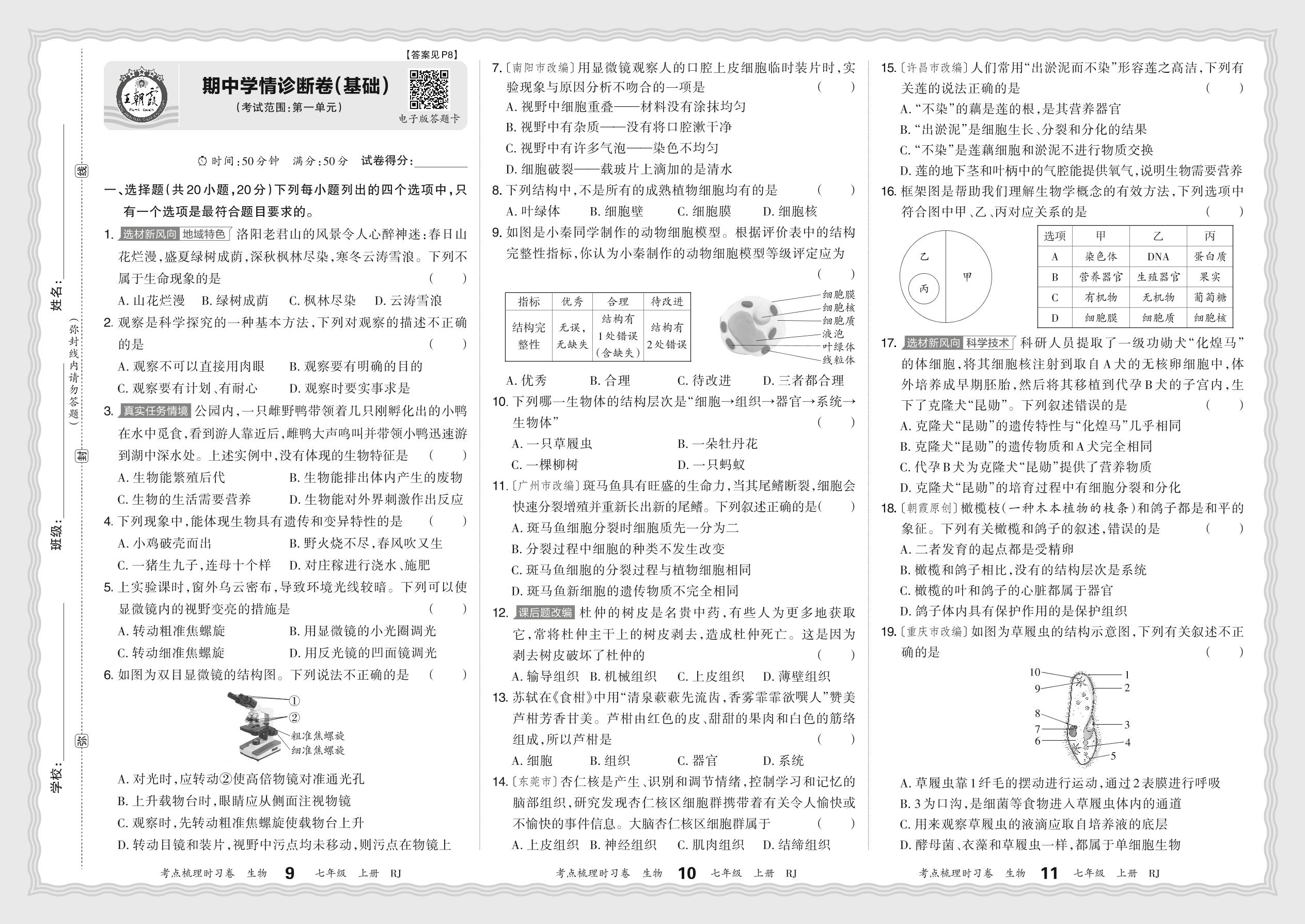 七年级生物人教版(2024)上册期中卷