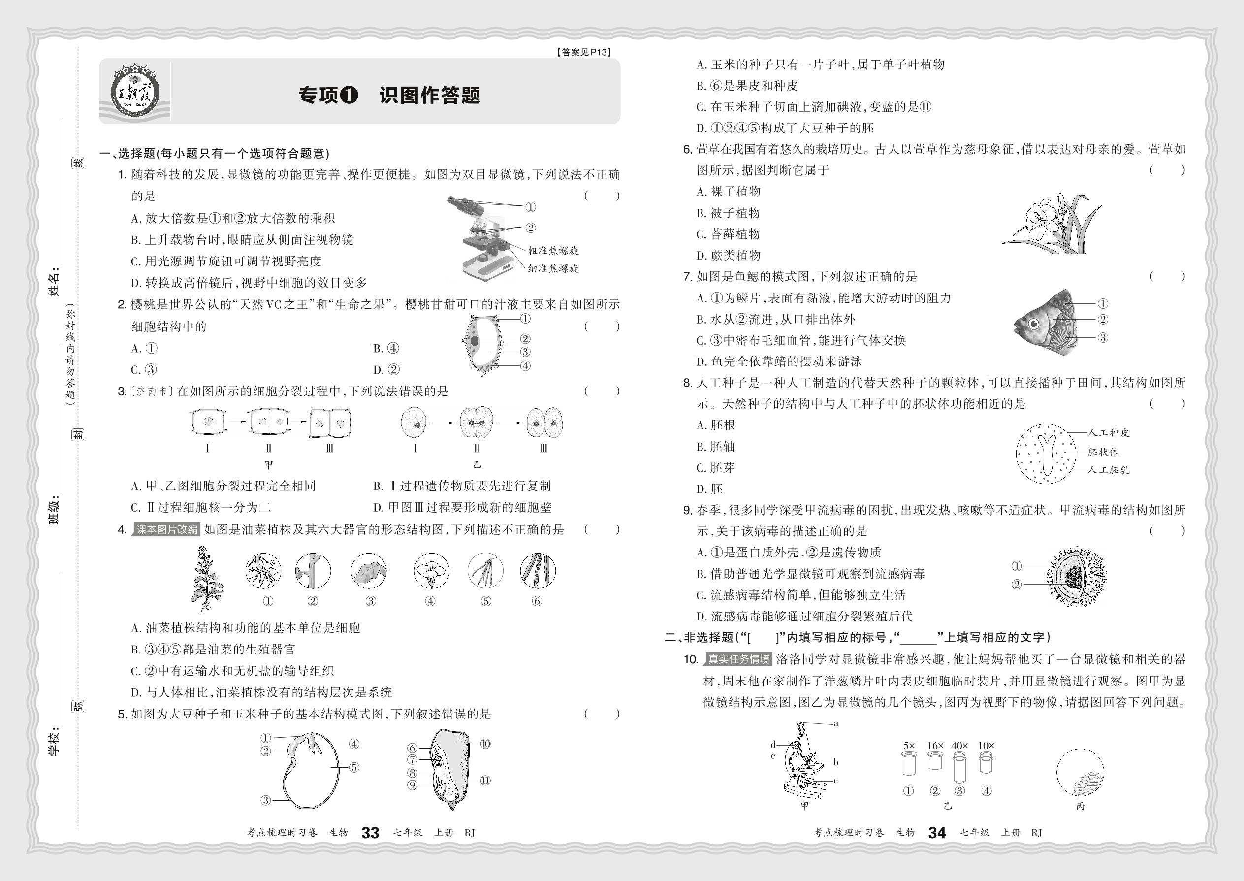 2024秋上册七年级生物人教版 期末专项卷KD版·识图作答题【1】