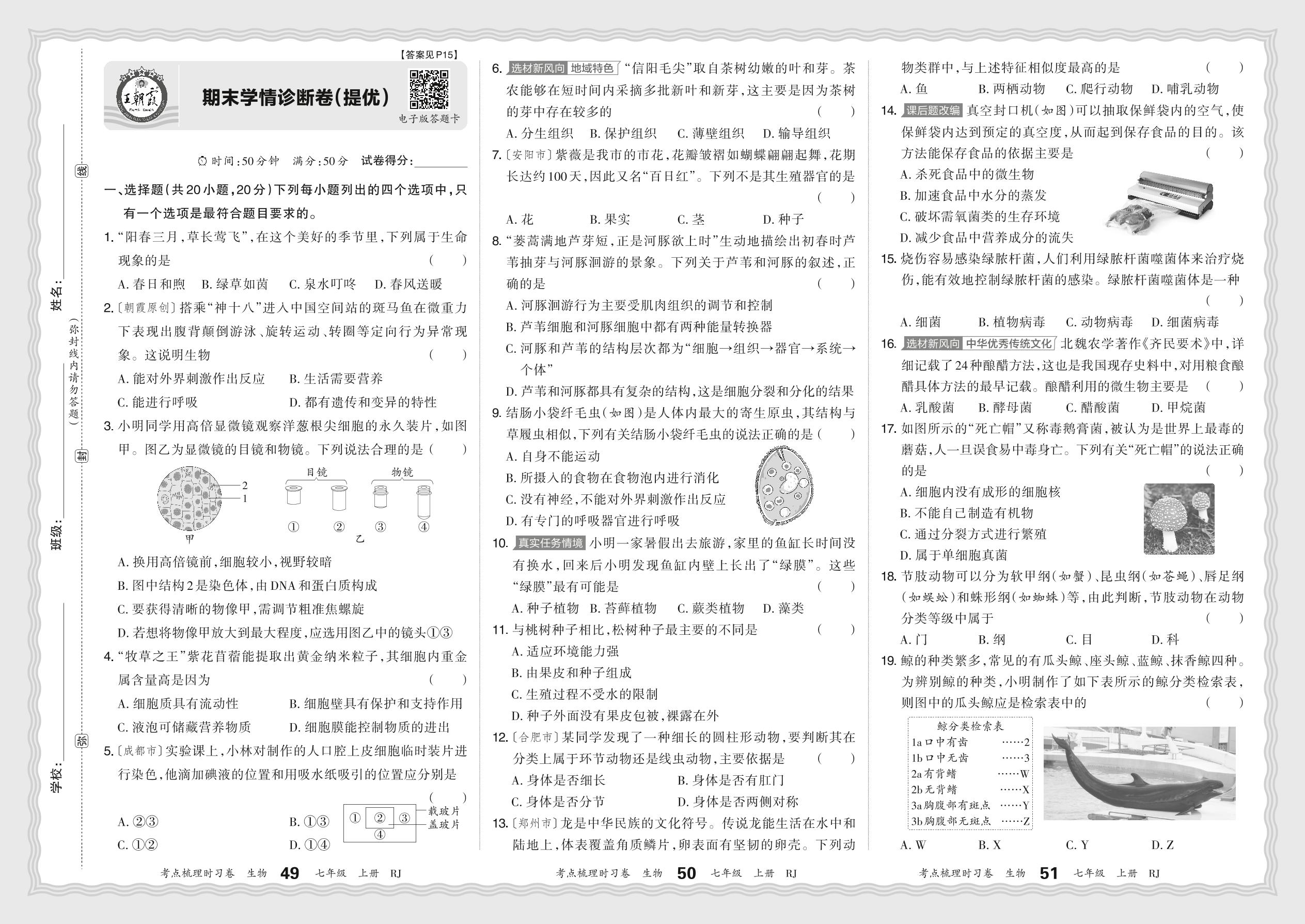 2024秋上册七年级生物人教版 期末学情诊断卷(提优)