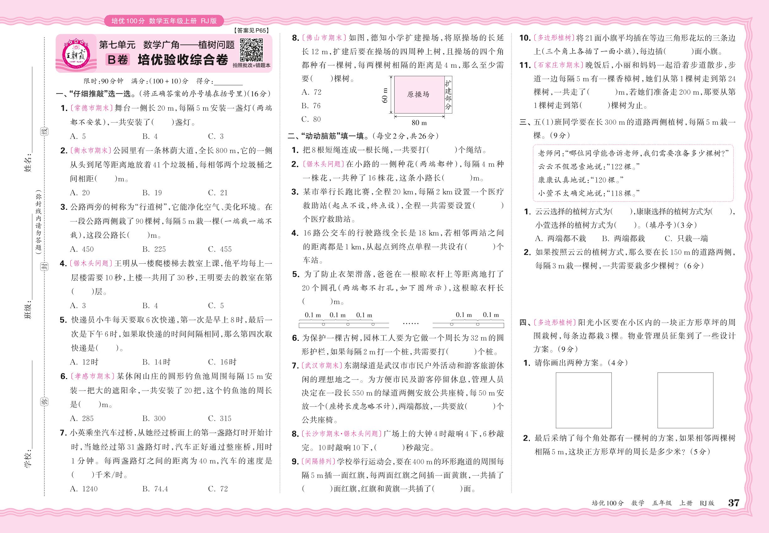 2024秋上册五年级数学人教版 第七单元B卷 培优验收综合卷