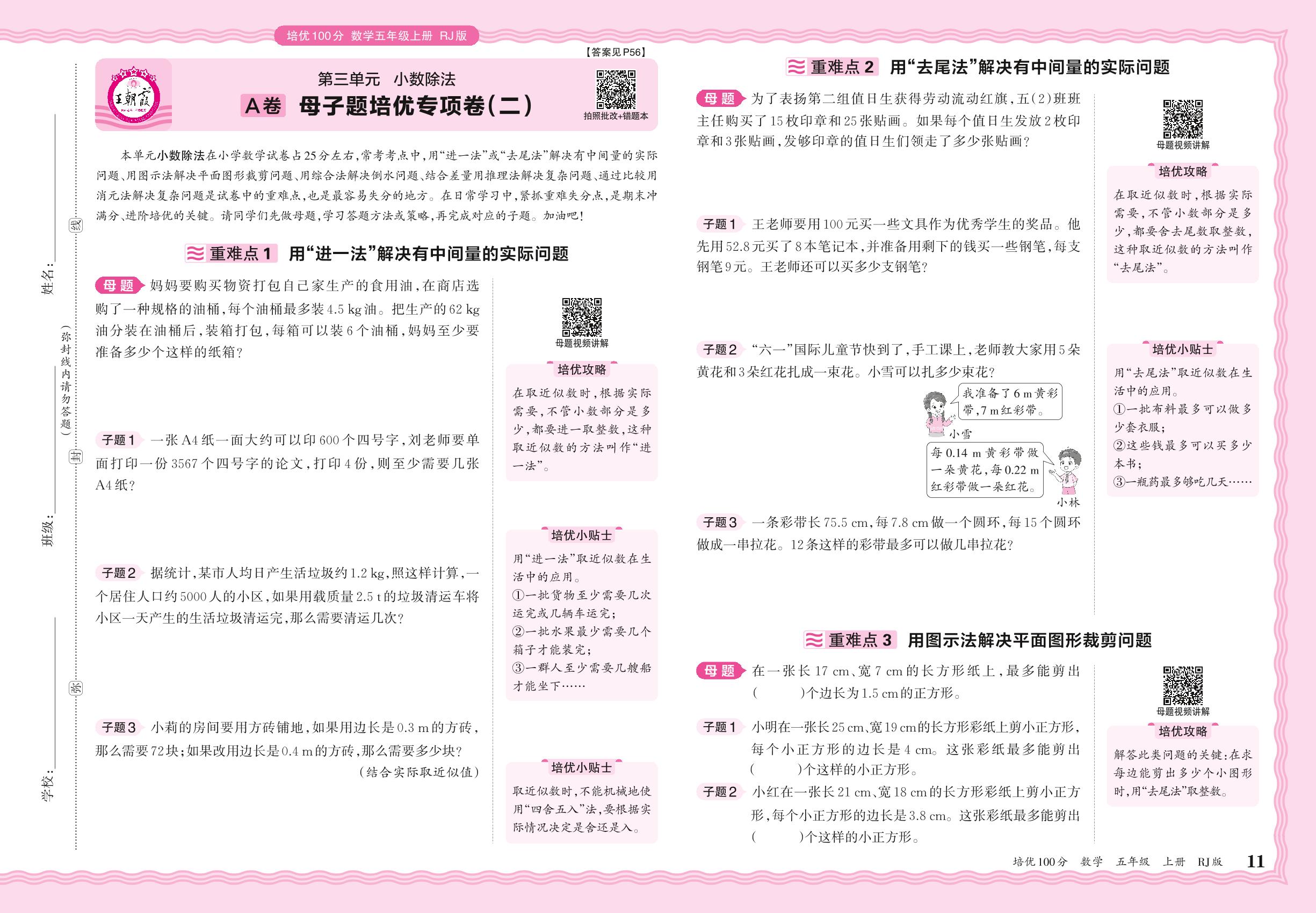2024秋上册五年级数学人教版 第三单元A卷 母子题培优专项卷(二)