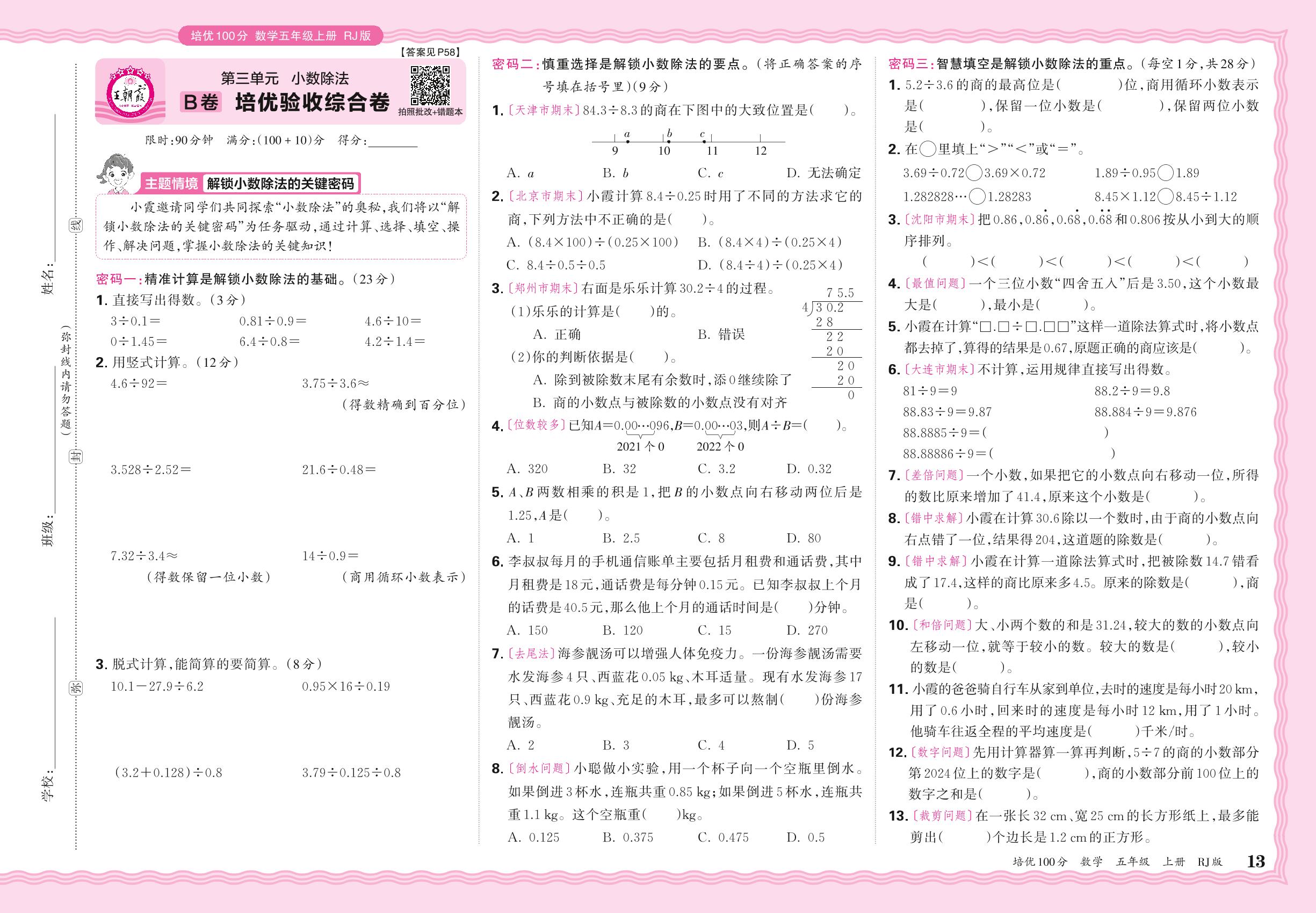 2024秋上册五年级数学人教版 第三单元B卷 培优验收综合卷