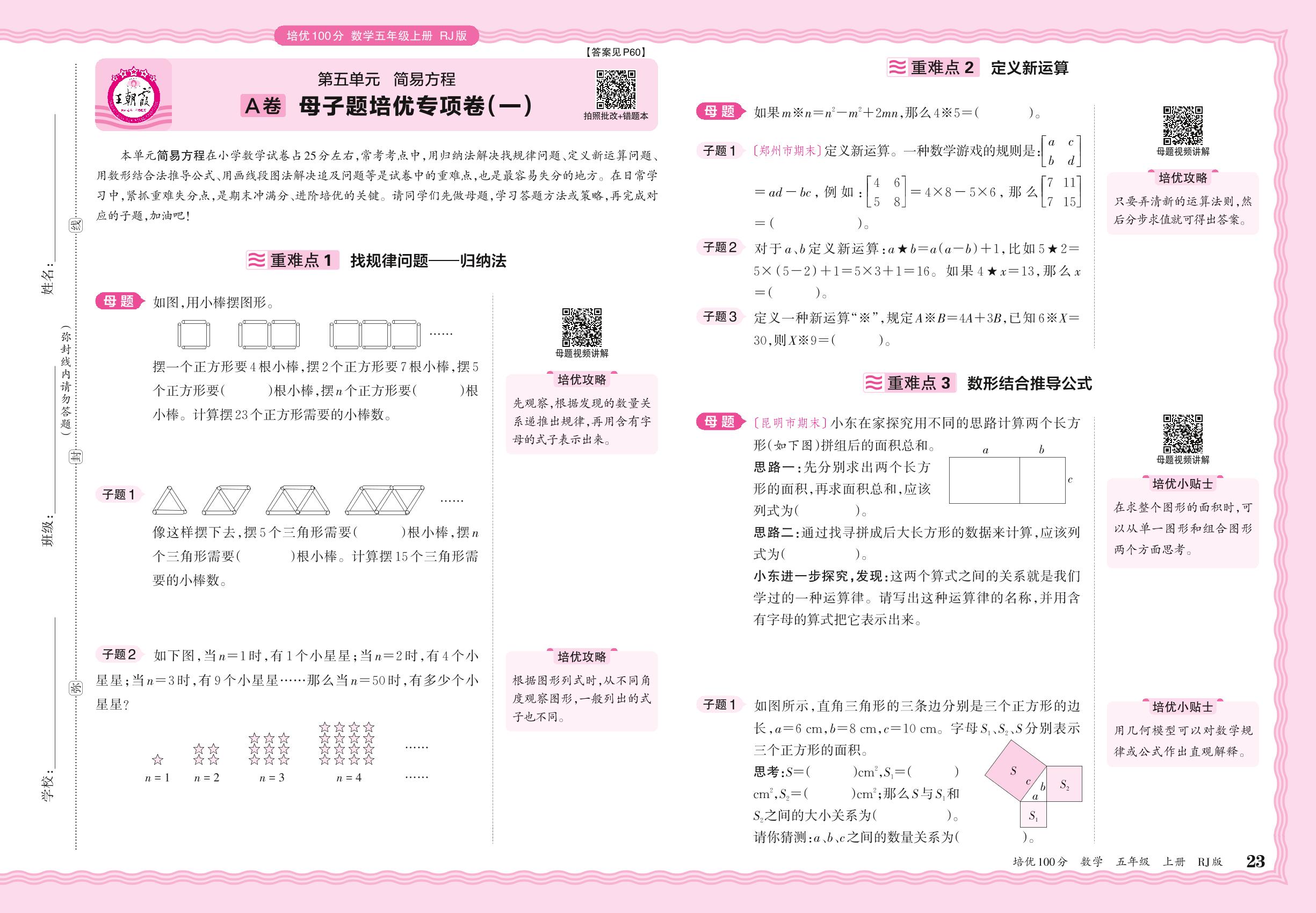 2024秋上册五年级数学人教版 第五单元A卷 母子题培优专项卷(一)