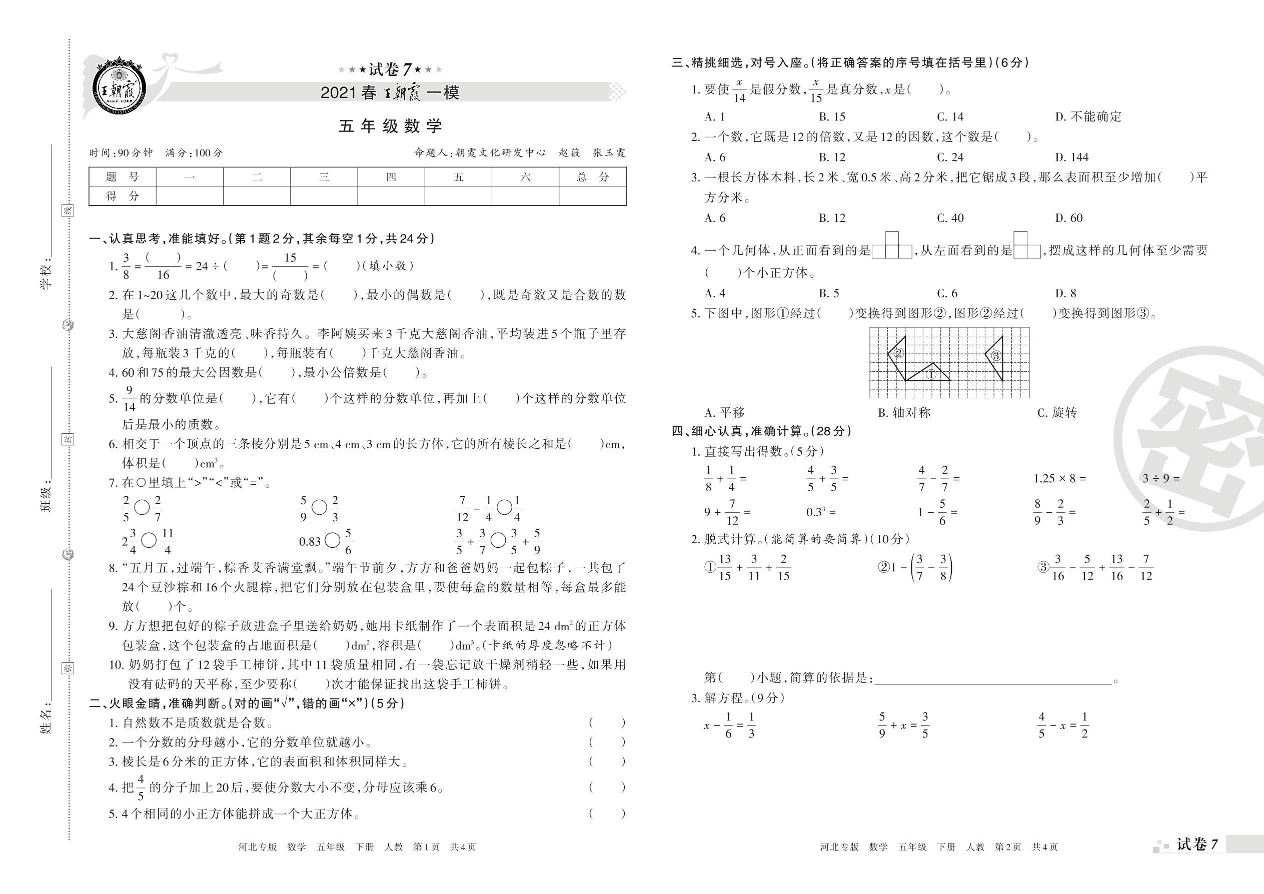王朝霞期末模拟卷五年级下册数学(人教版)_R210804163055【7】