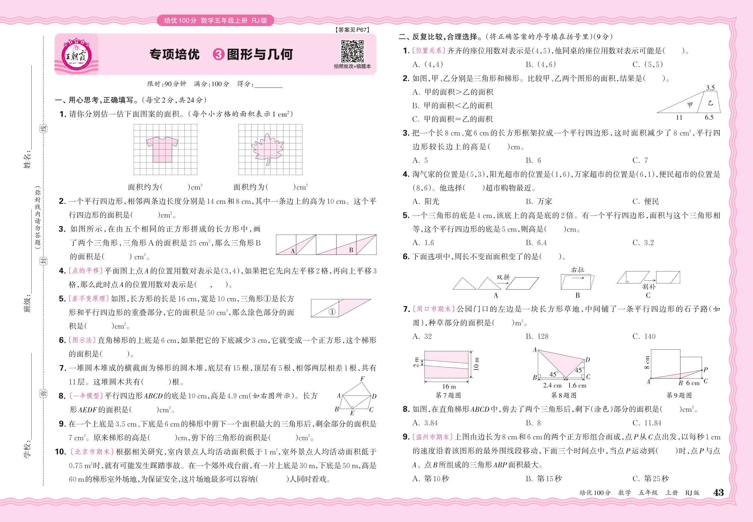 2024秋上册五年级数学人教版 期末专项卷PY版·图形与几何【3】
