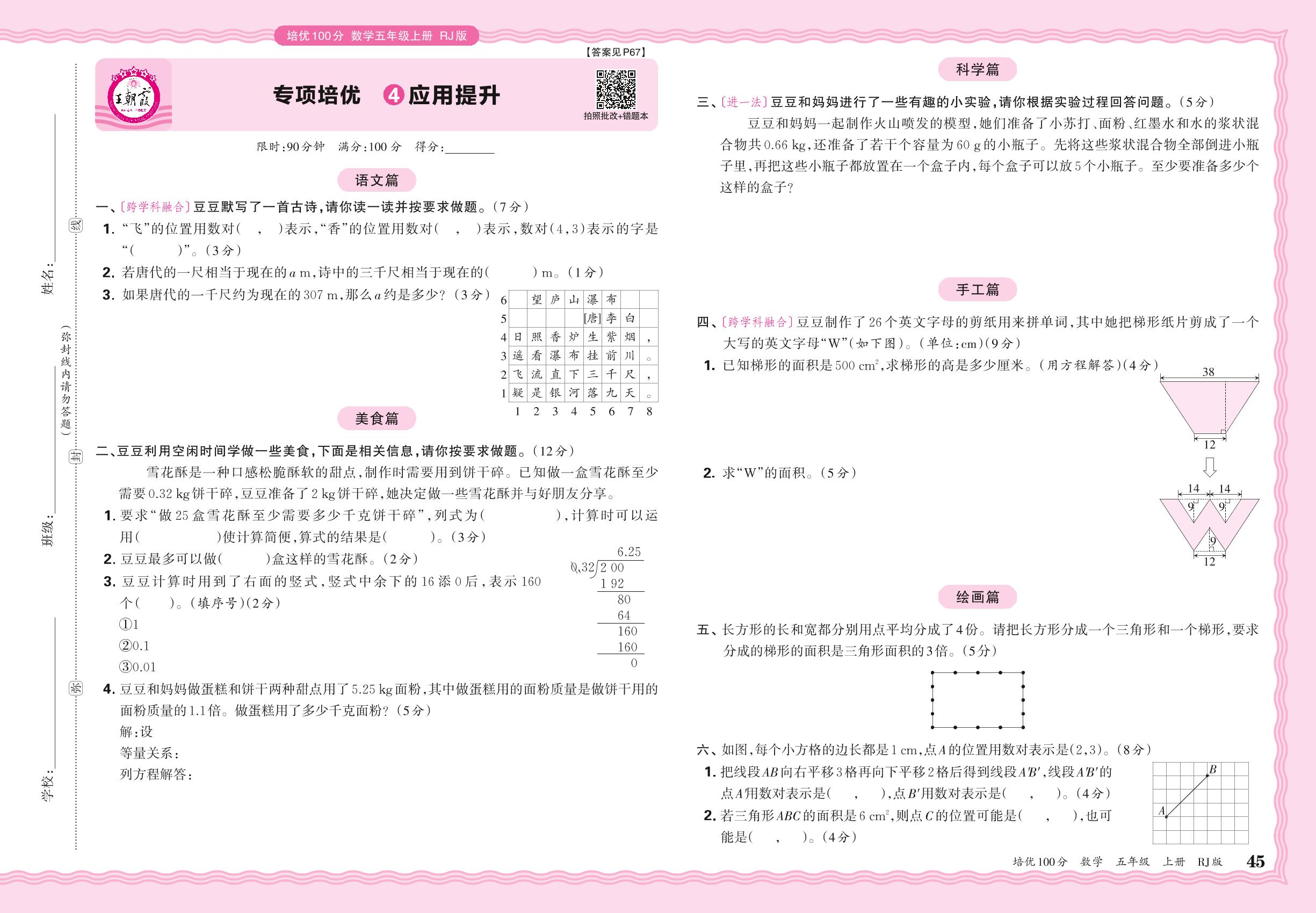 2024秋上册五年级数学人教版 期末专项卷PY版·应用提升【4】