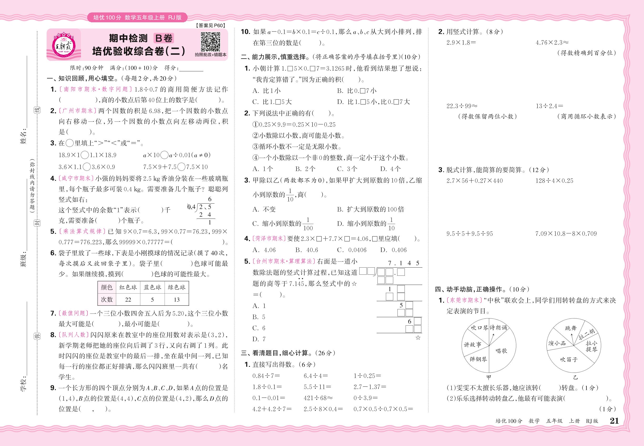 2024秋上册五年级数学人教版 期中检测B卷 培优验收综合卷(二)