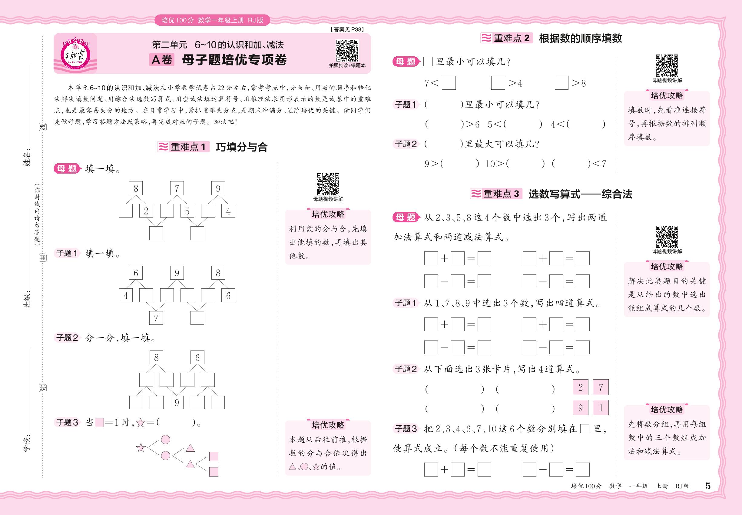 2024秋上册一年级数学人教版 第二单元A卷 母子题培优专项卷