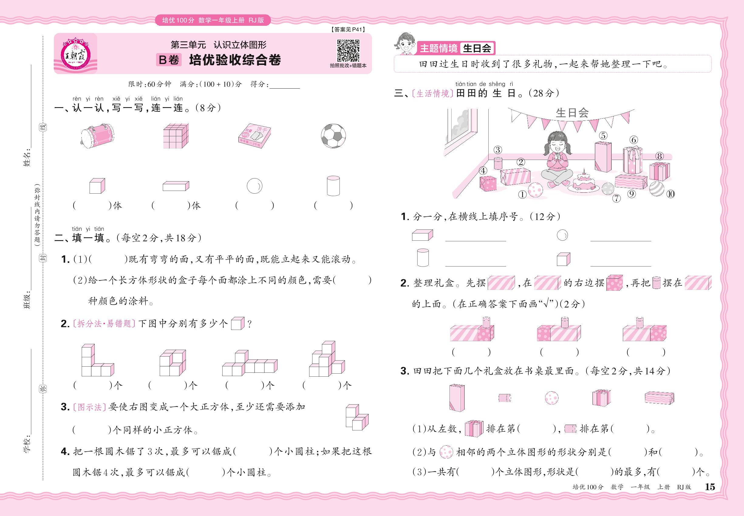 2024秋上册一年级数学人教版 第三单元B卷 培优验收综合卷