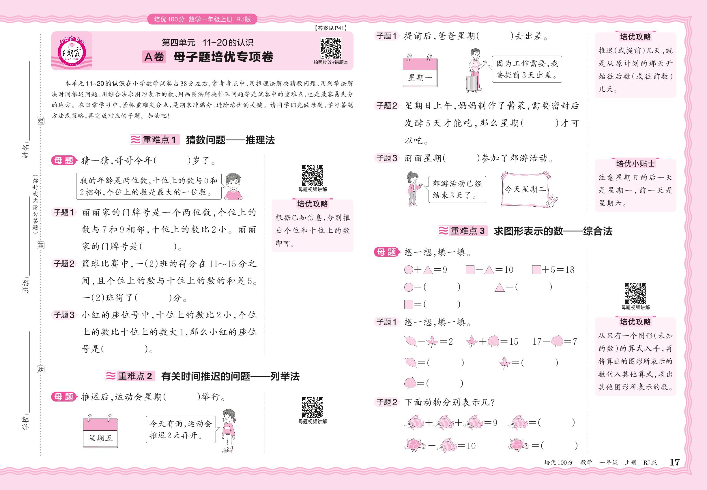 2024秋上册一年级数学人教版 第四单元A卷 母子题培优专项卷