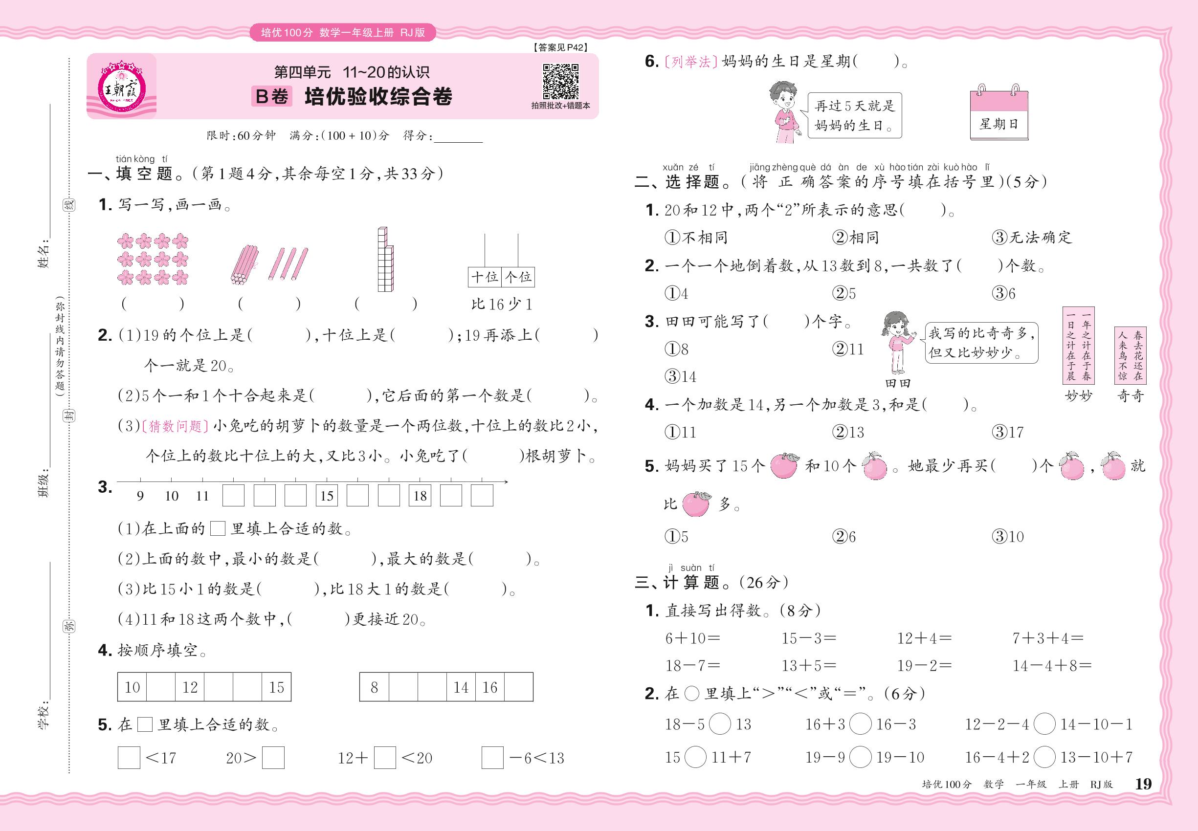 2024秋上册一年级数学人教版 第四单元B卷 培优验收综合卷