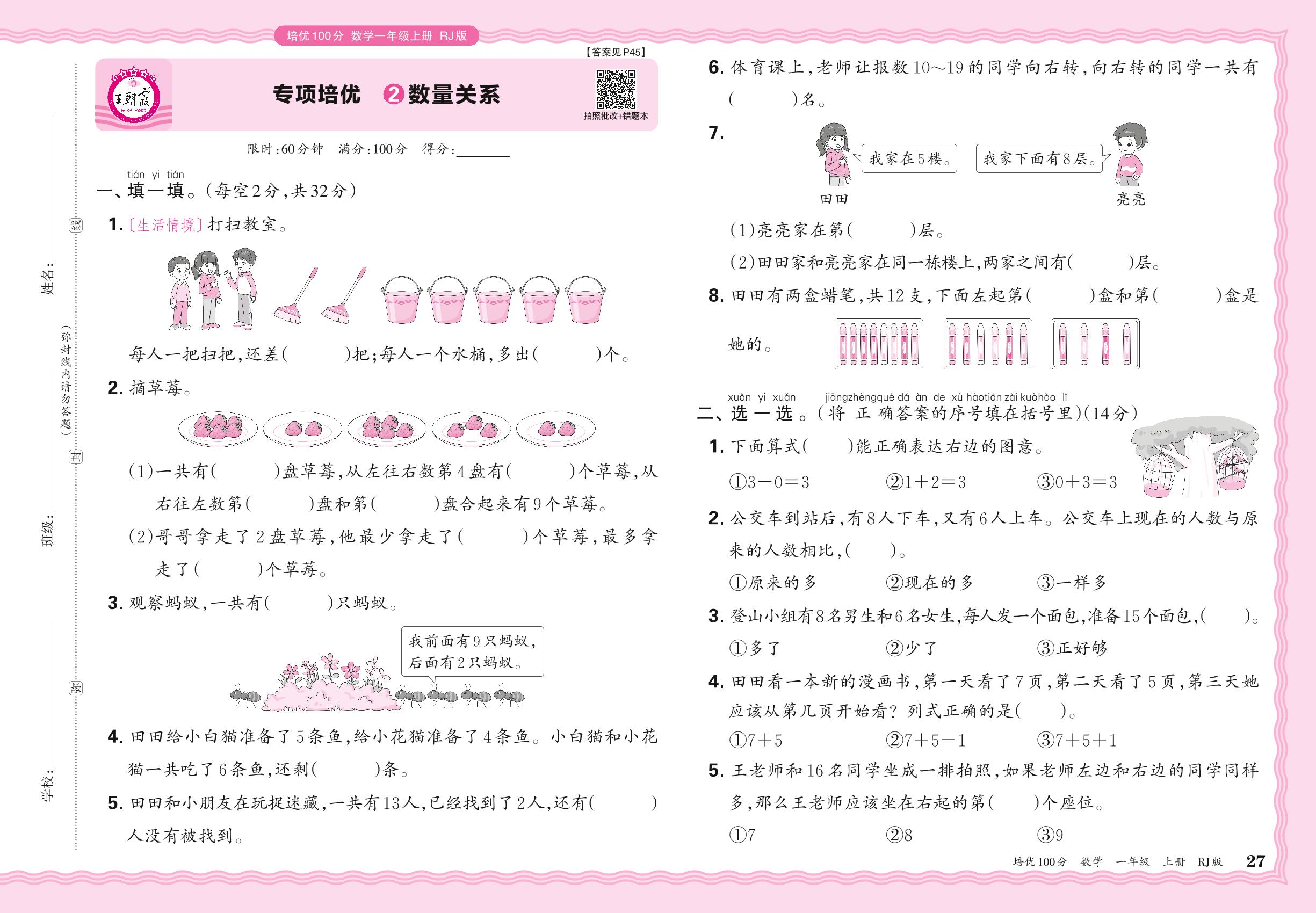 2024秋上册一年级数学人教版 期末专项卷PY版·数量关系【2】