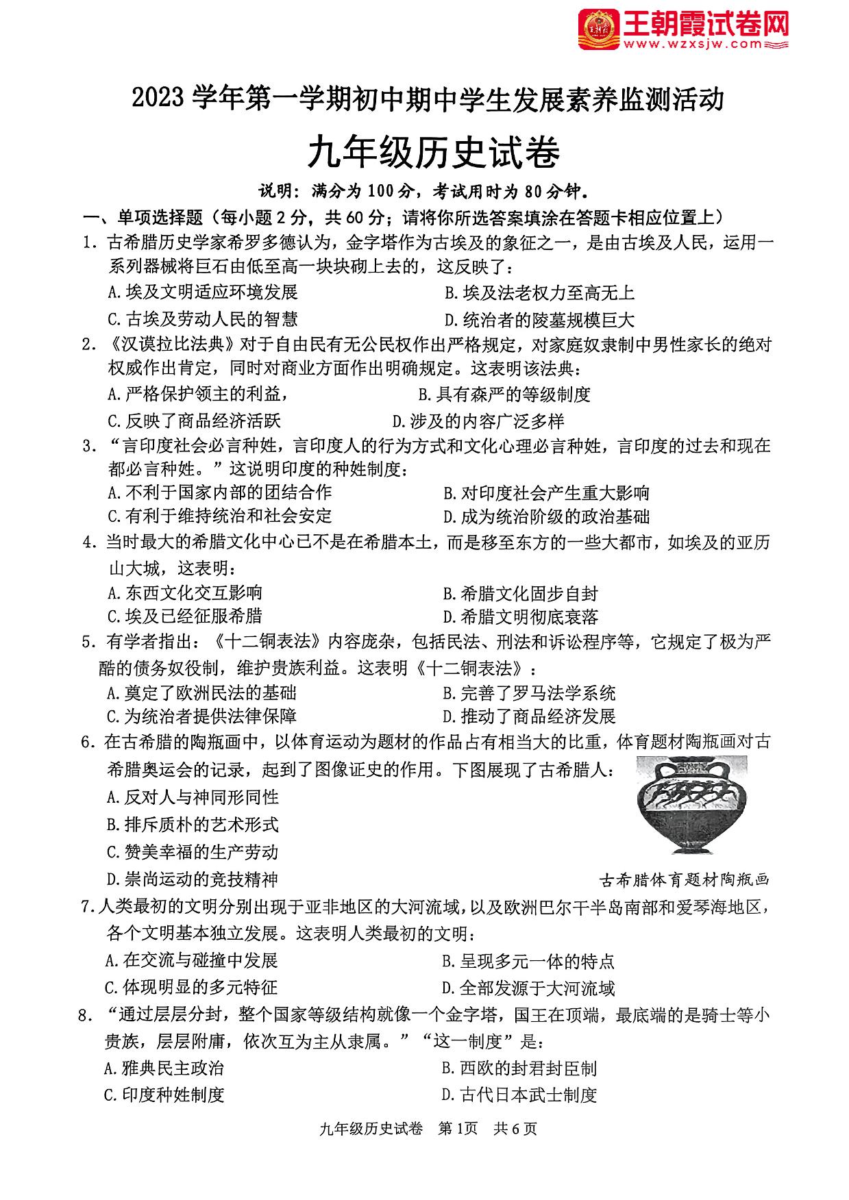 广东省清远市英德市2023-2024学年第一学期初中期中学生发展素养监测活动试卷九年级历史(人教版)