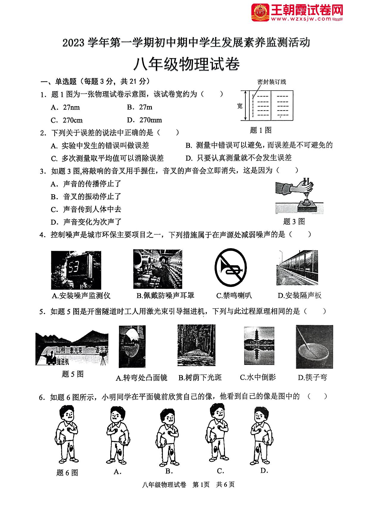 广东省清远市英德市2023-2024学年第一学期初中期中学生发展素养监测活动试卷八年级物理(沪粤版)