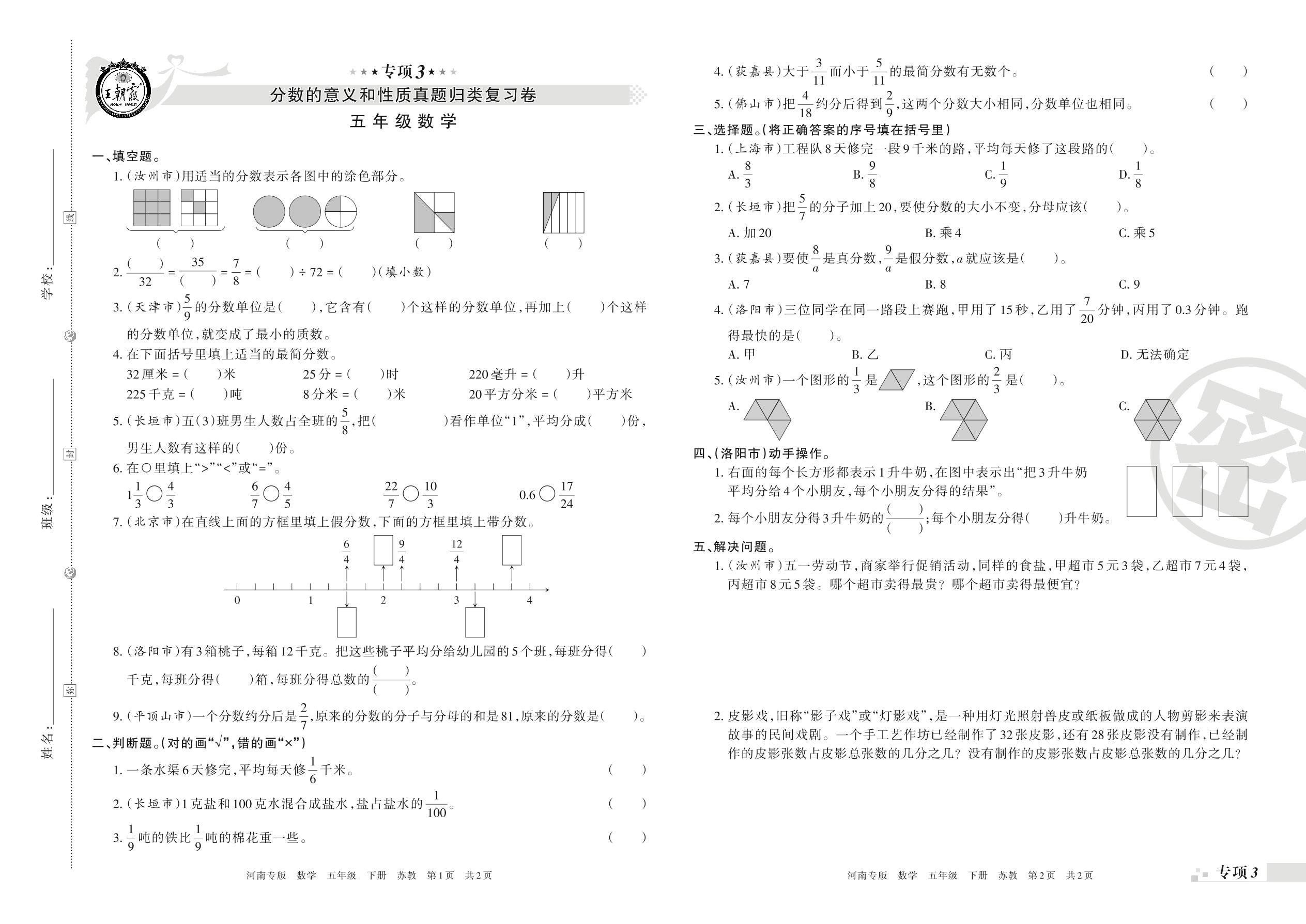 王朝霞期末专项卷——分数的意义和性质、分数的加法和减法真题归类复习五年级下册数学(苏教版)【0】