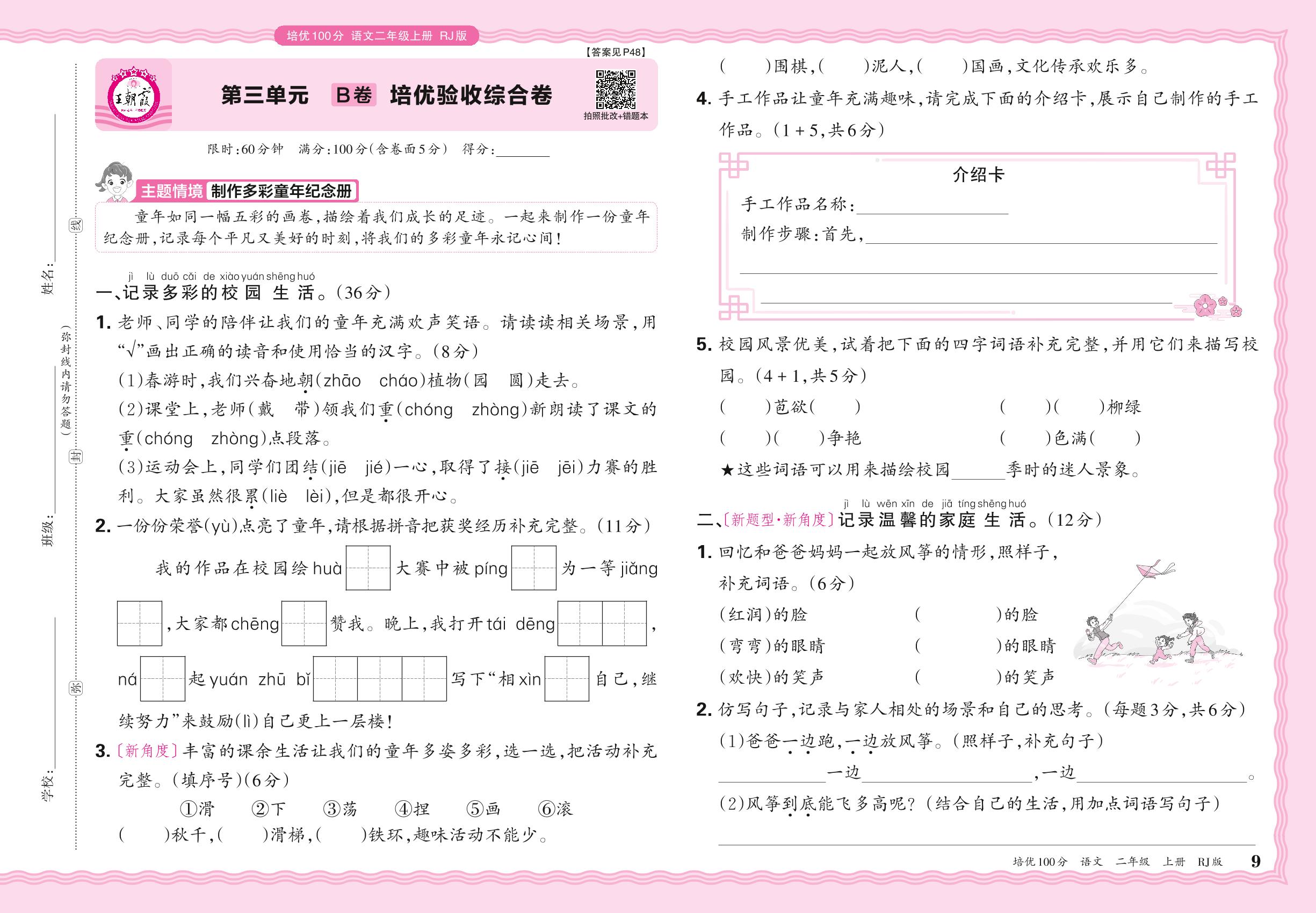2024秋上册二年级语文人教版 第三单元B卷 培优验收综合卷