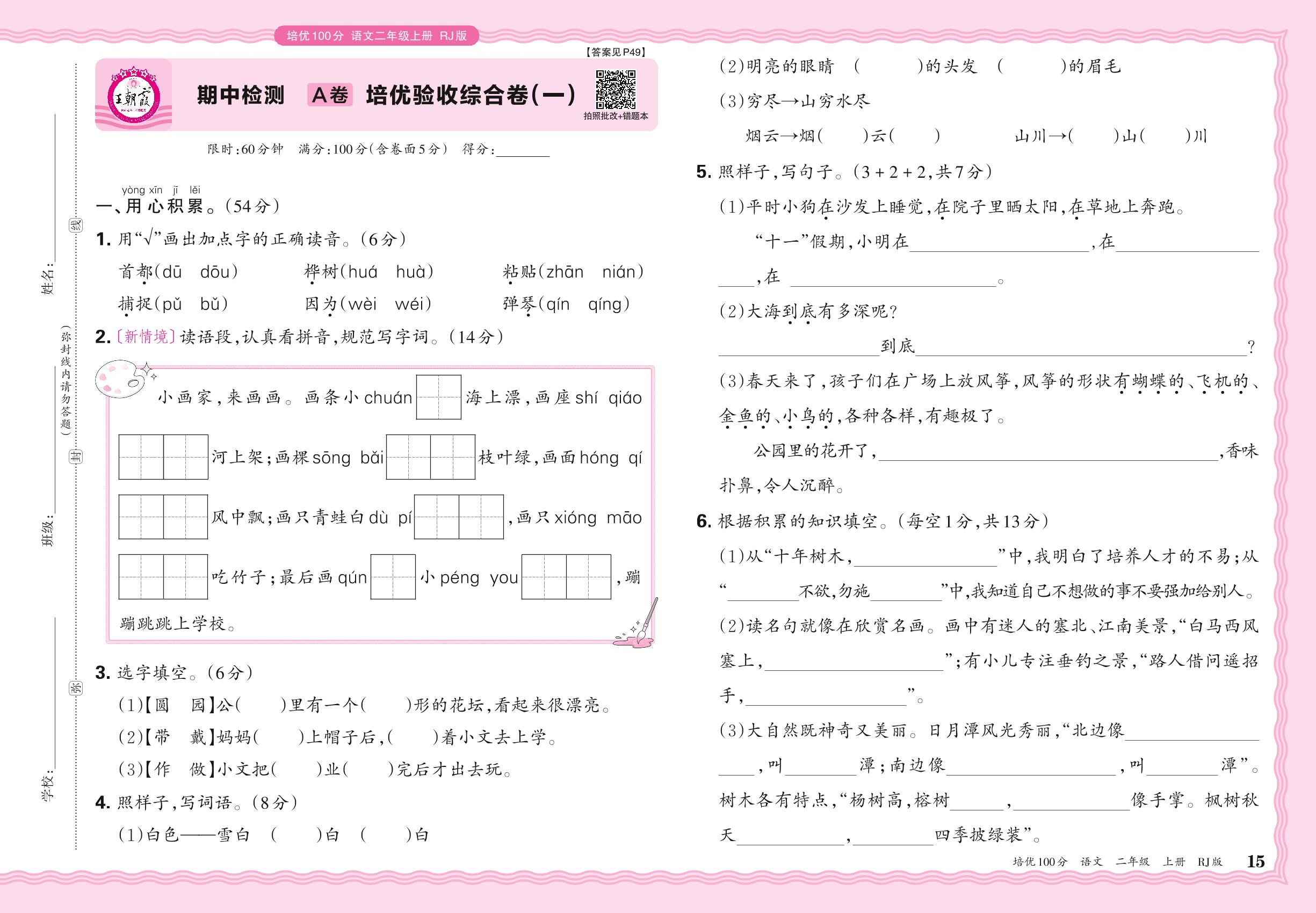 2024秋上册二年级语文人教版 期中检测A卷 培优验收综合卷(一)