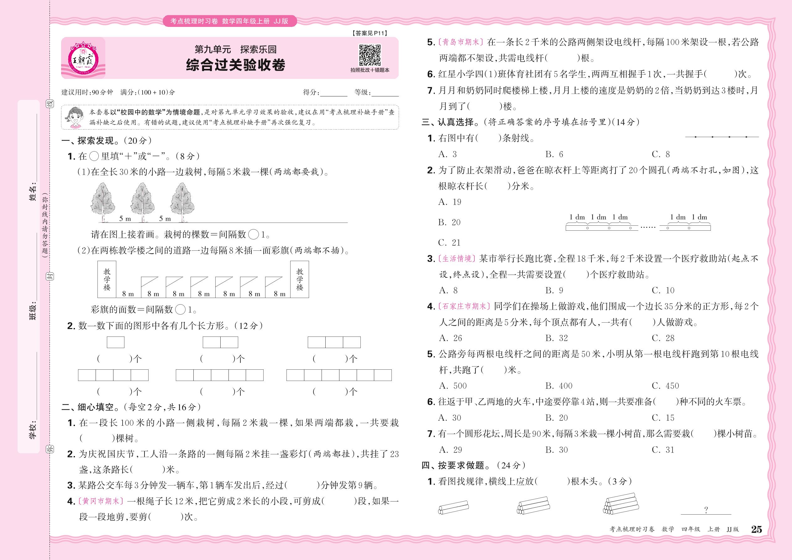 2024秋上册四年级数学冀教版 第九单元 综合过关验收卷