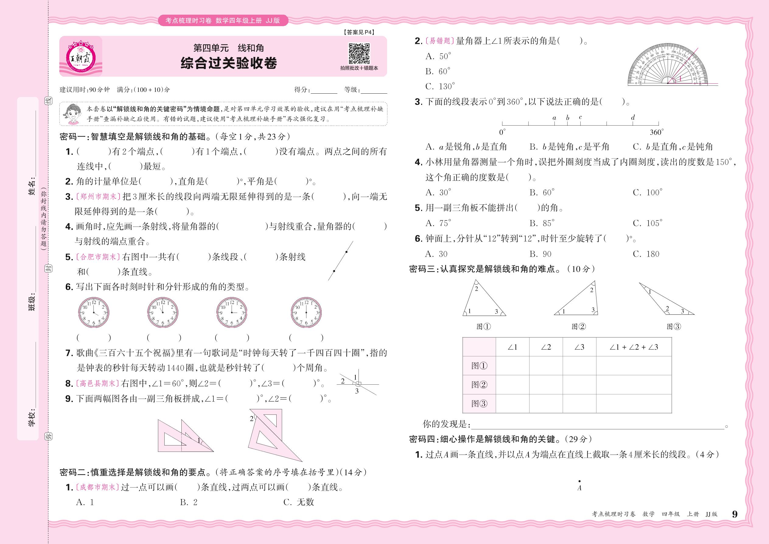 四年级数学冀教版上册单元卷