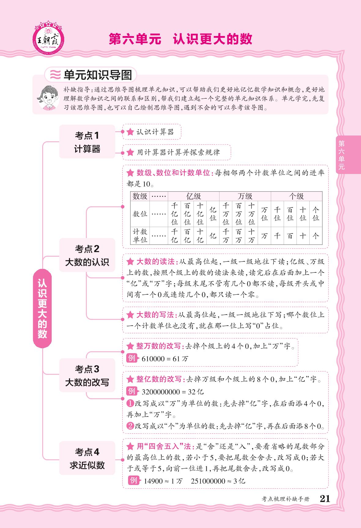 2024秋上册四年级数学冀教版 考点梳理补缺手册——第六单元 认识更大的数
