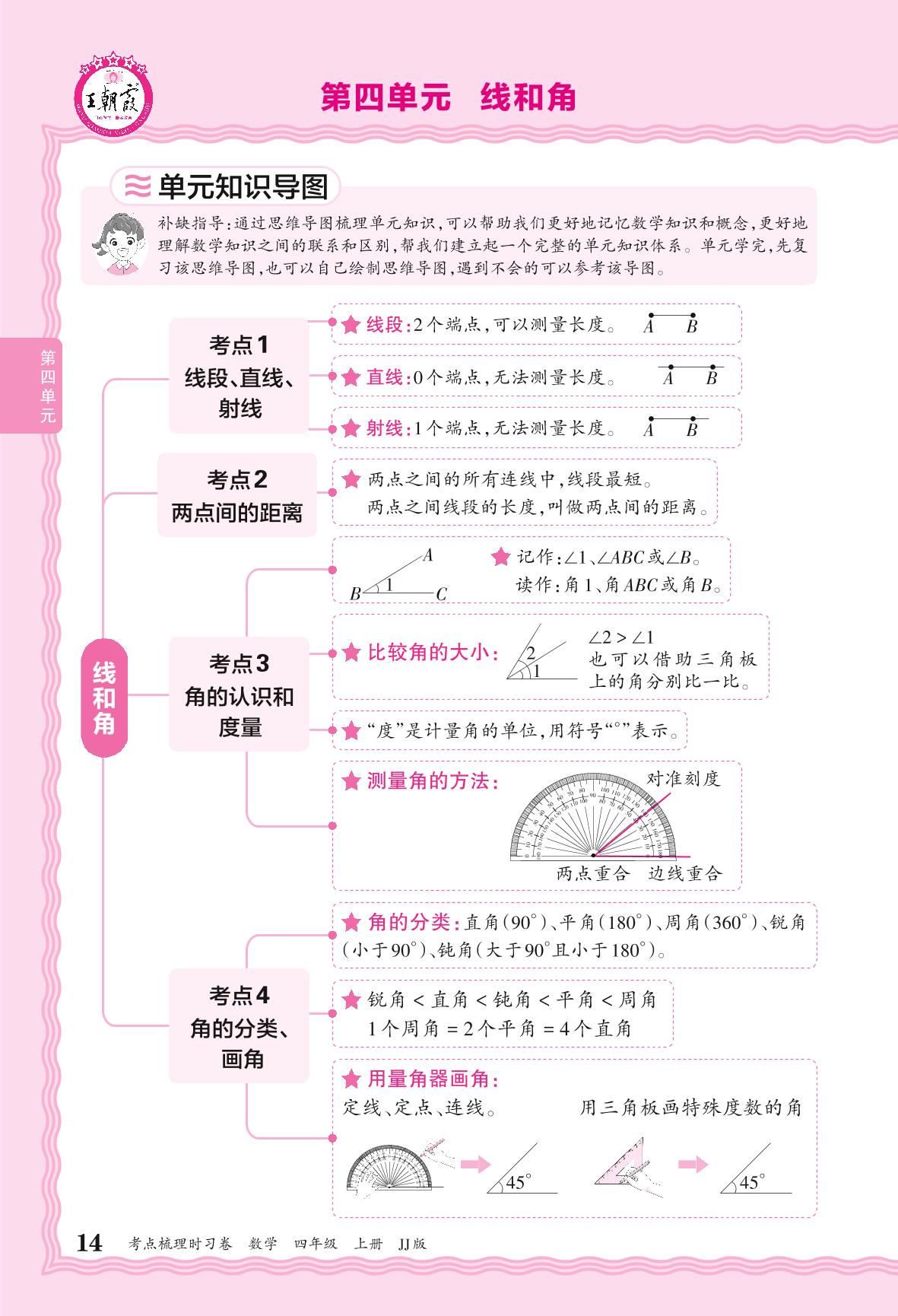 2024秋上册四年级数学冀教版 考点梳理补缺手册——第四单元 线和角