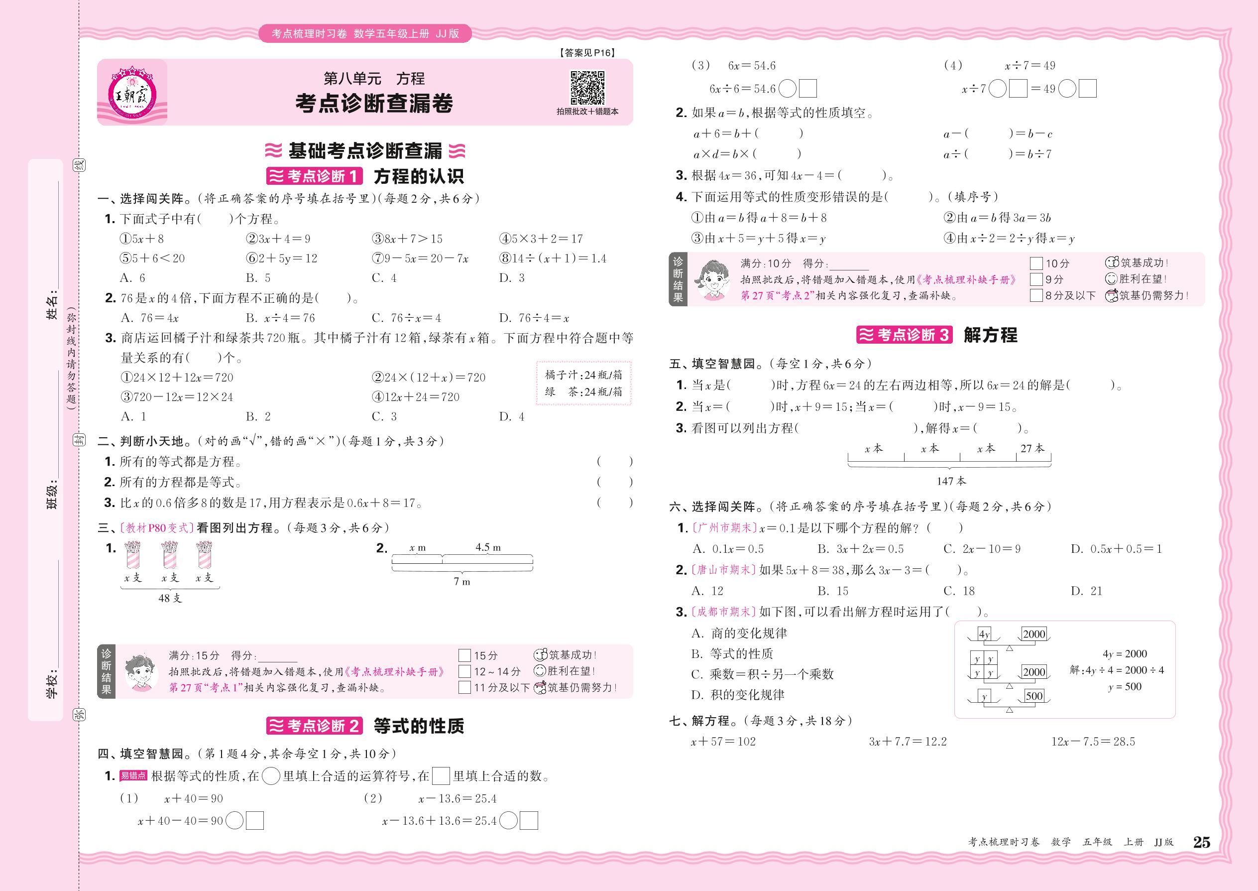 2024秋上册五年级数学冀教版 第八单元 考点诊断查漏卷