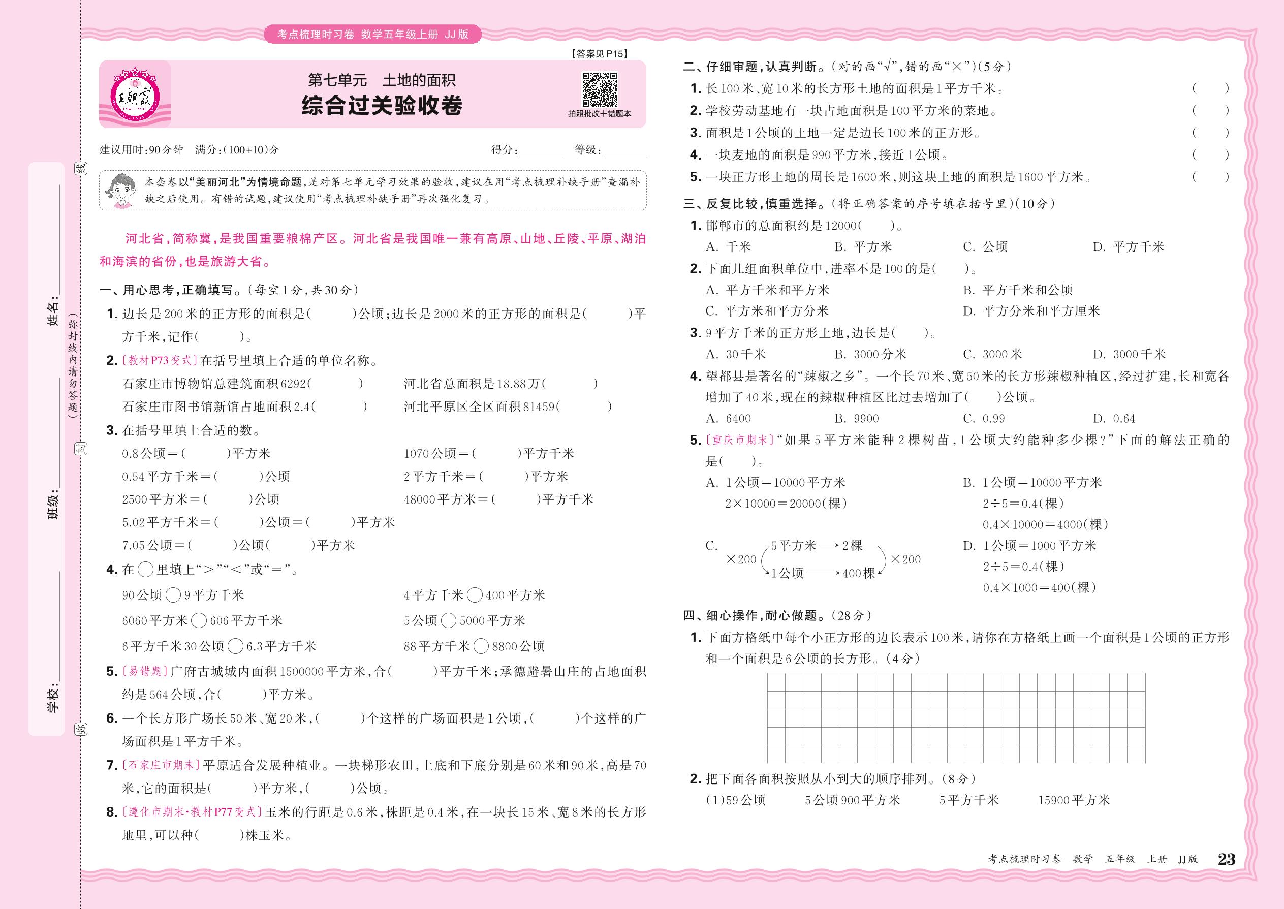 2024秋上册五年级数学冀教版 第七单元 综合过关验收卷