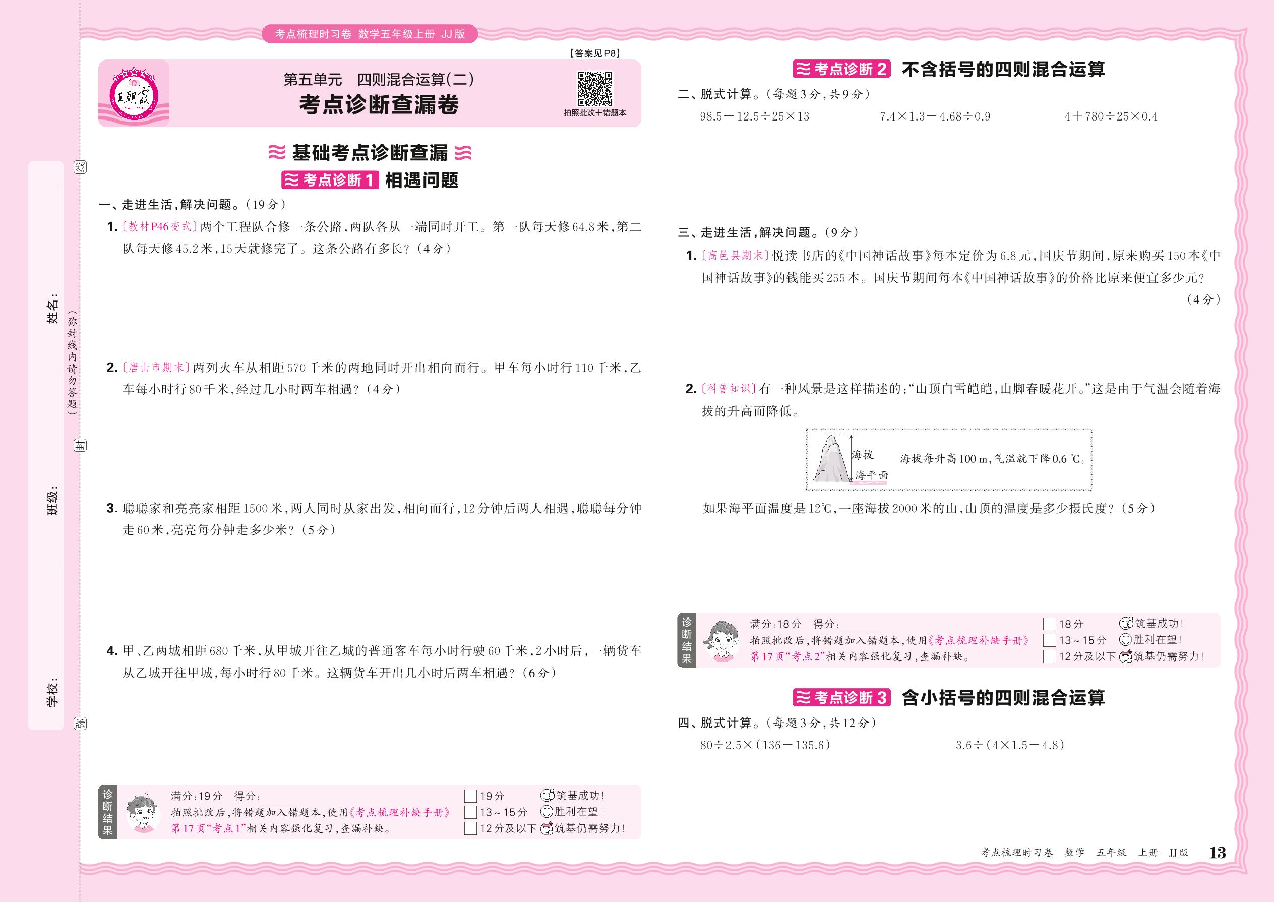 2024秋上册五年级数学冀教版 第五单元 考点诊断查漏卷