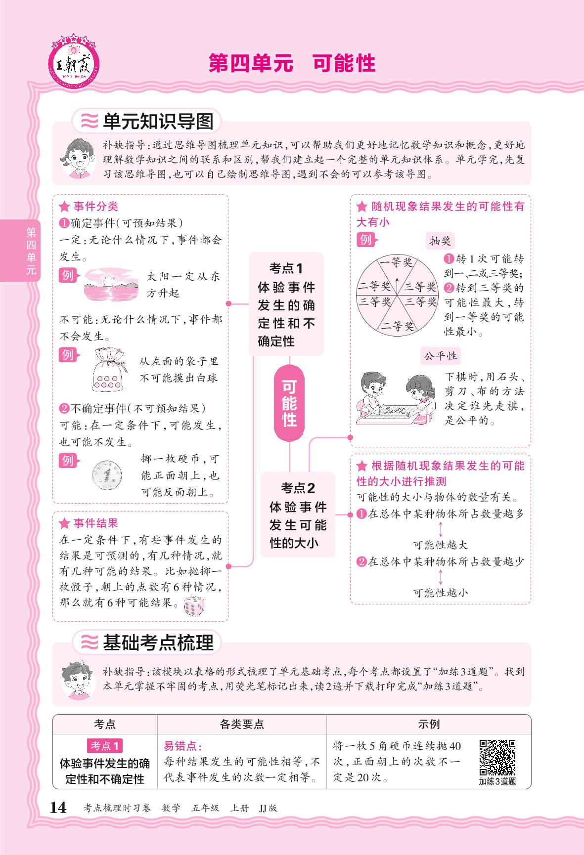 2024秋上册五年级数学冀教版 考点梳理补缺手册——第四单元 可能性