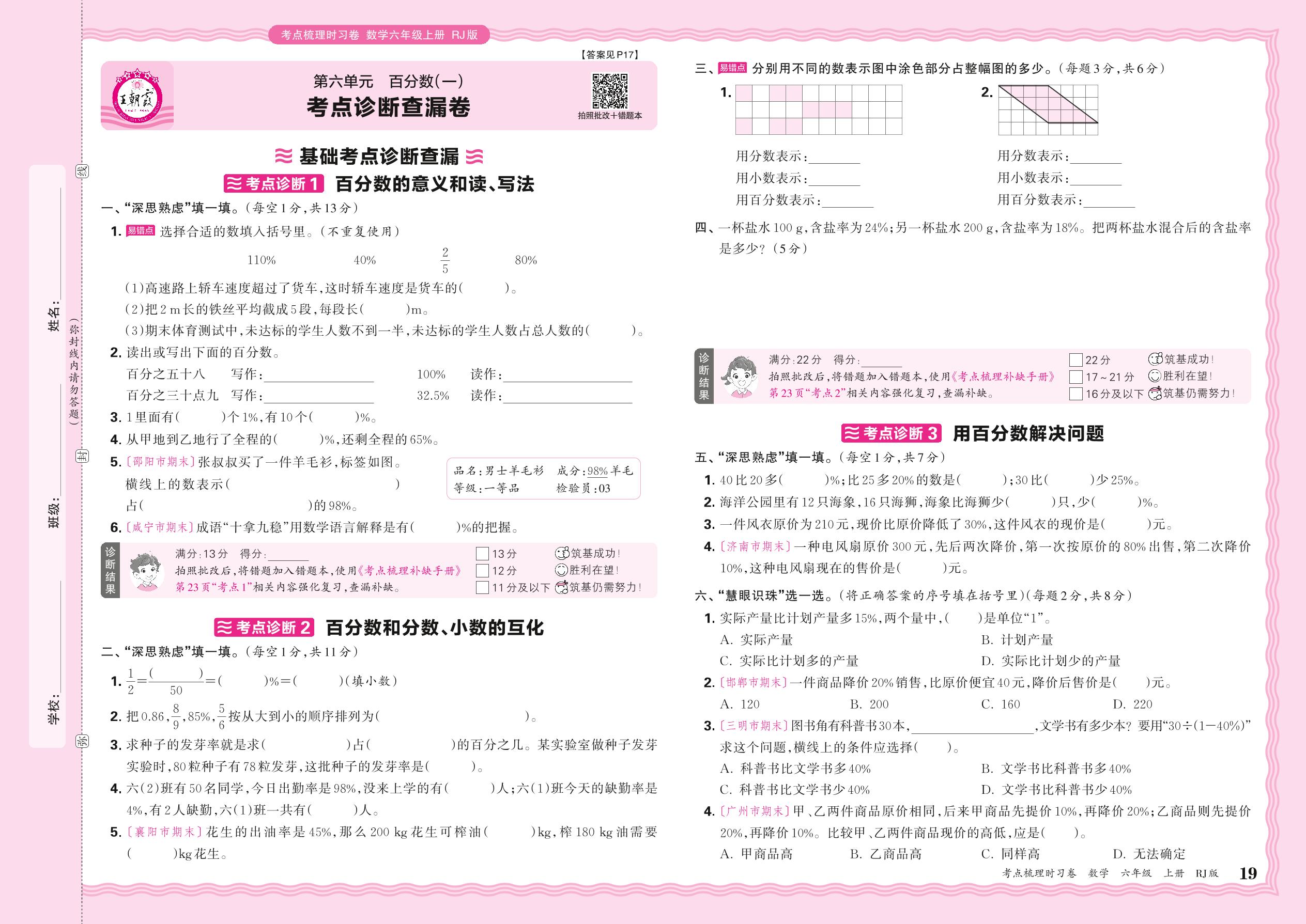 2024秋上册六年级数学人教版 第六单元 考点诊断查漏卷