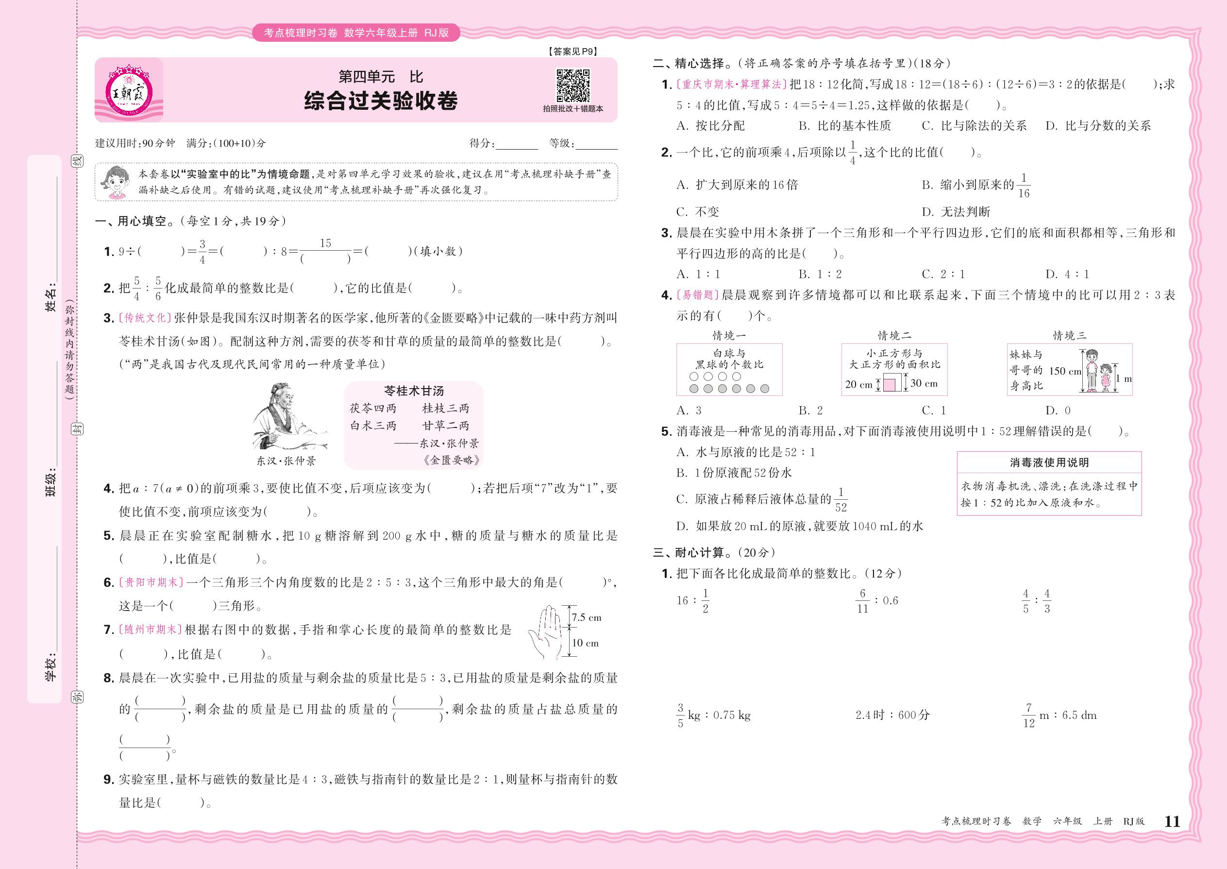 2024秋上册六年级数学人教版 第四单元 综合过关验收卷