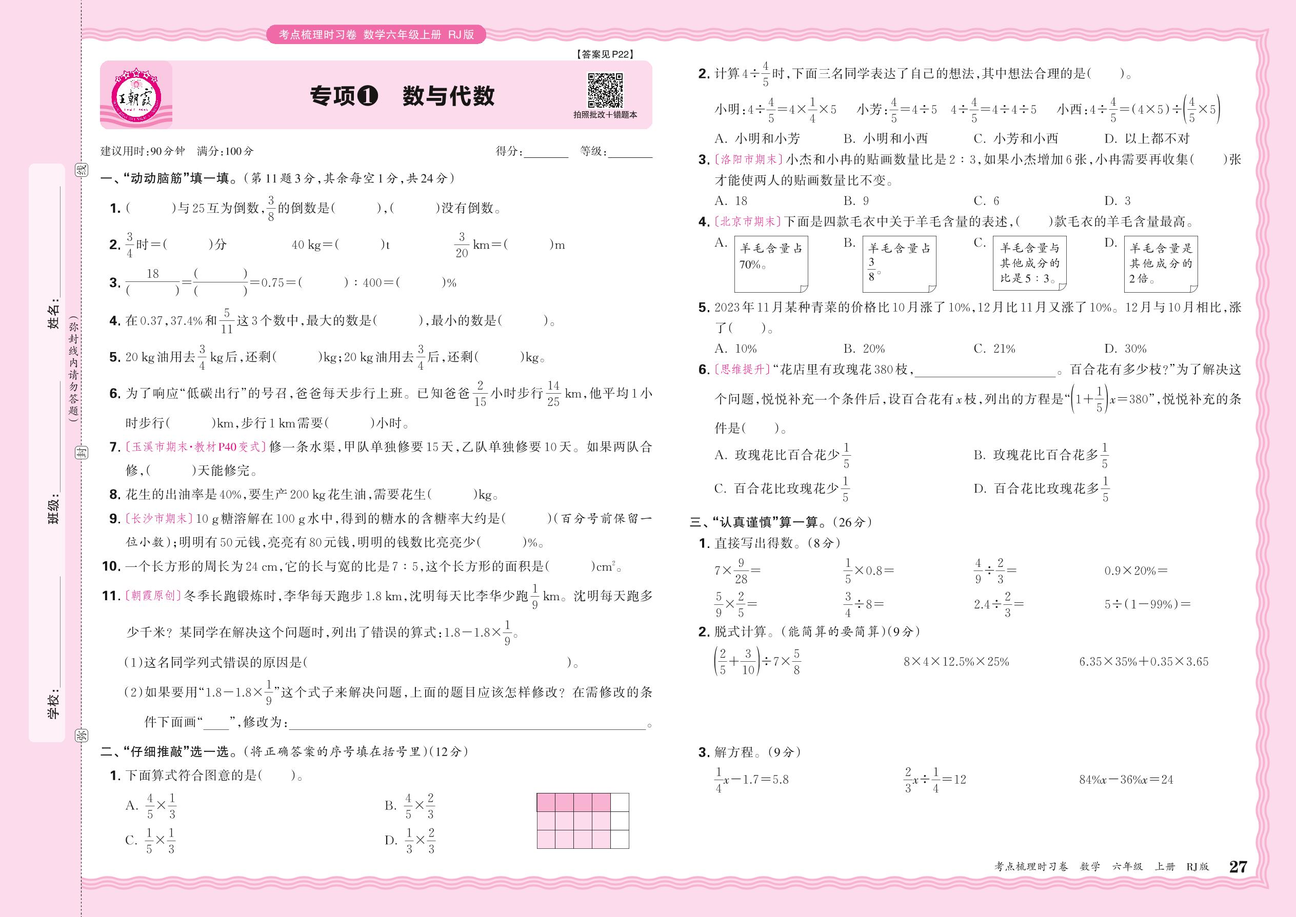 2024秋上册六年级数学人教版 期末专项卷KD版·数与代数【1】