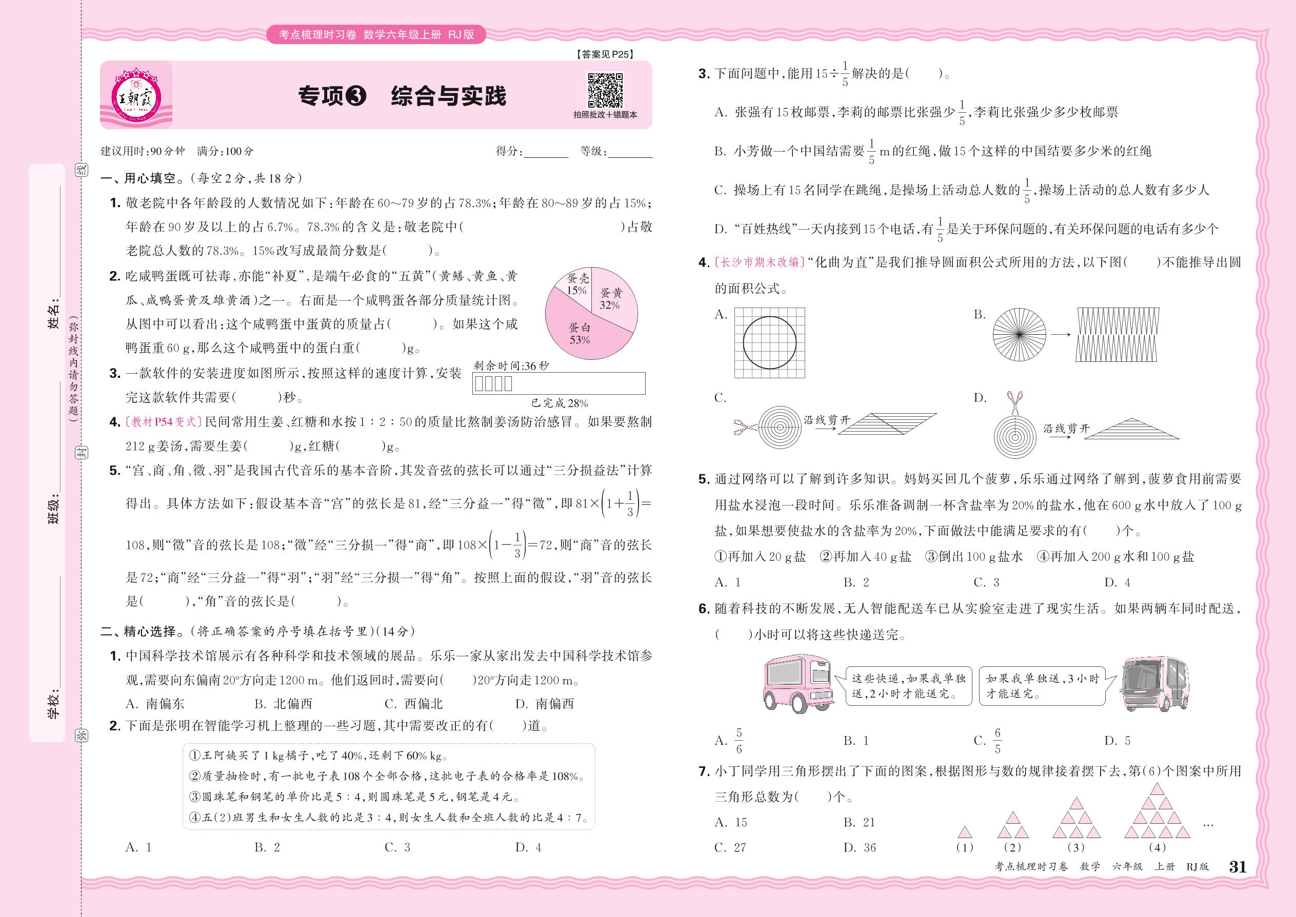 2024秋上册六年级数学人教版 期末专项卷KD版·综合与实践【3】