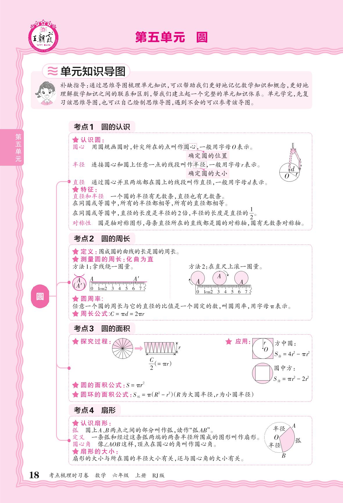2024秋上册六年级数学人教版 考点梳理补缺手册——第五单元 圆